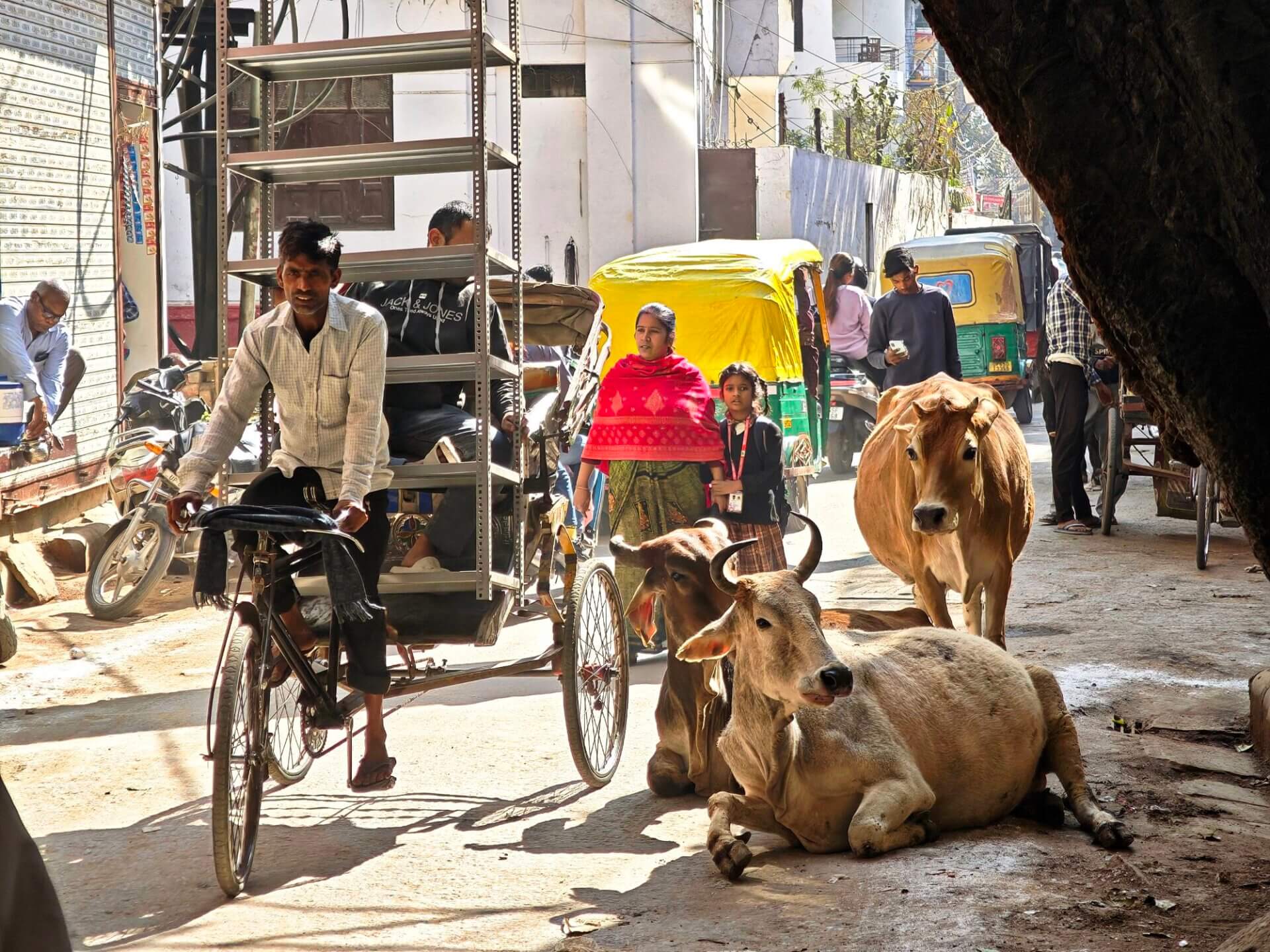 Hinter den Ghats liegt die Altstadt, durchzogen von überfüllten Straßen und engsten Gassen. Manchmal geht darin selbst für Fußgänger nichts mehr. Irgendwie komme ich immer wieder raus.