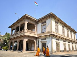 Heute ist der Gazellenhain eines der wichtigsten buddhistischen Pilgerziele und ein archäologischer Park. Und einige Gazellen gibt es auch noch. Den genauen Platz der Lehrrede markiert die Dhamekh Stupa aus dem 3. Jhd. vor Chr. Darum herum finden sich Ruinen und Grundmauern von Klöstern und Tempeln aus dem ersten Jahrtausend. Etwas außerhalb markiert die Chaukhandi Stupa den Platz des Zusammentreffens mit den ersten Schülern. Wieder treffe ich auf buddhistische Pilgergruppen aus ganz Asien die ihre unterschiedlichen Rituale praktizieren. Trotzdem ist es deutlich ruhiger als in Bodh Gaya.