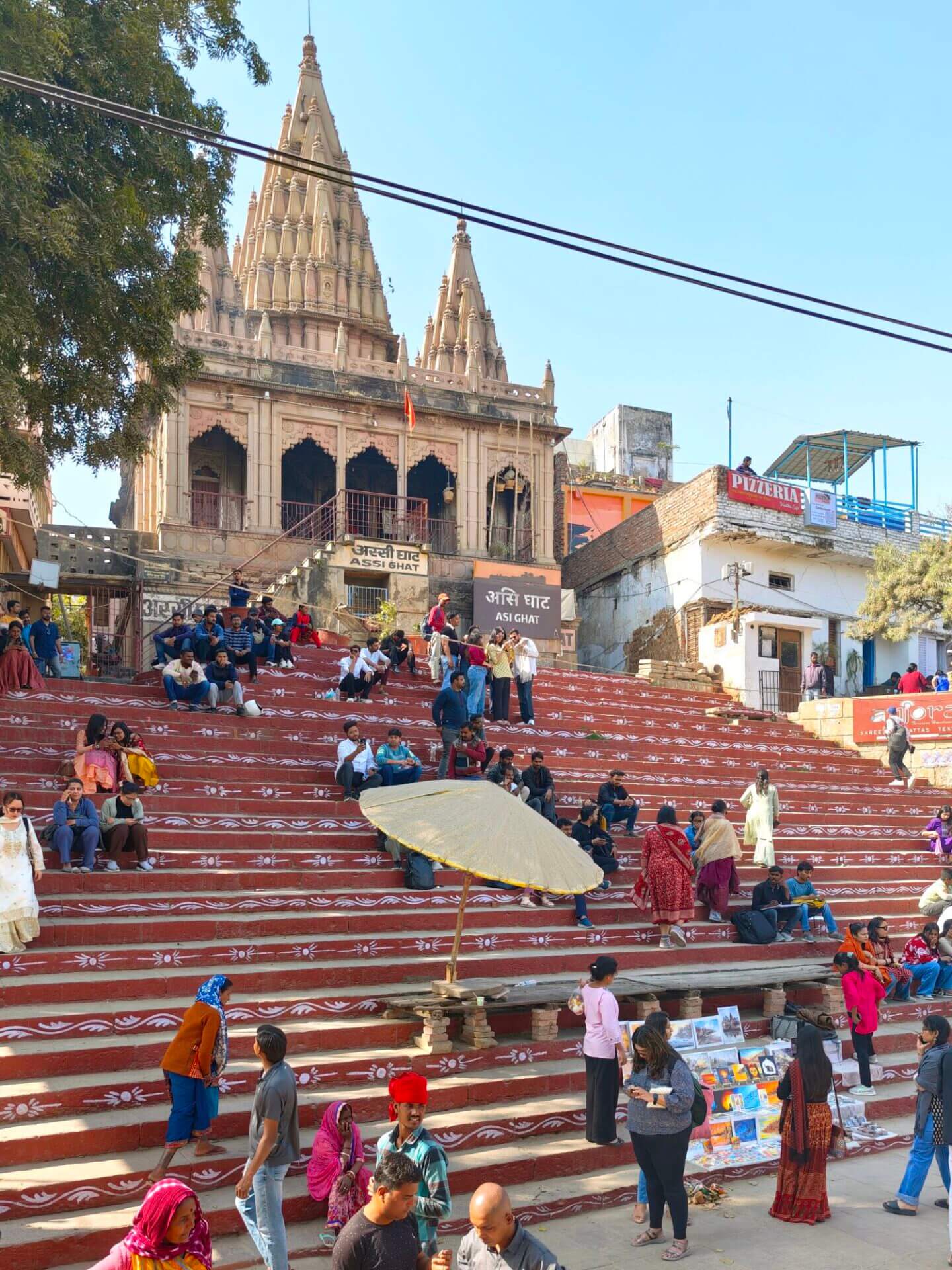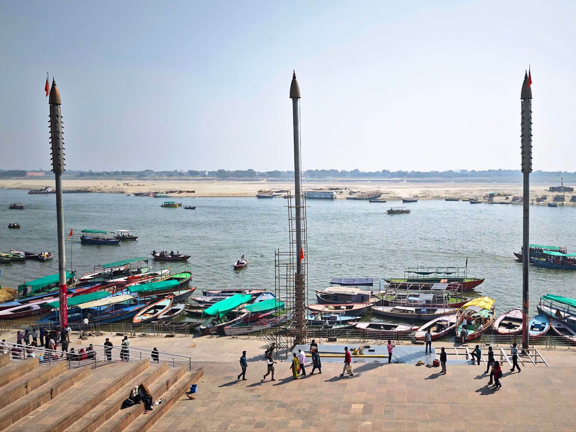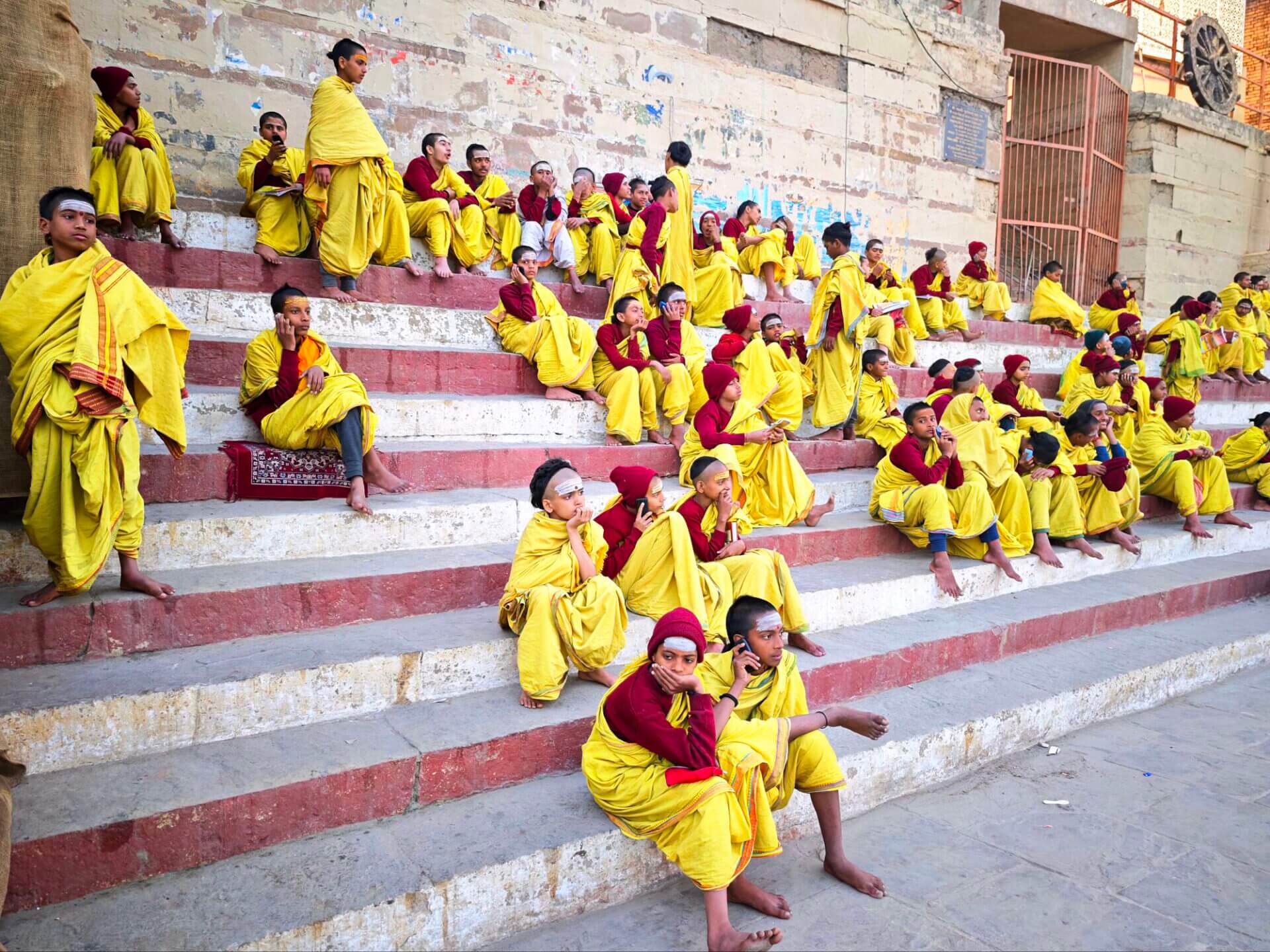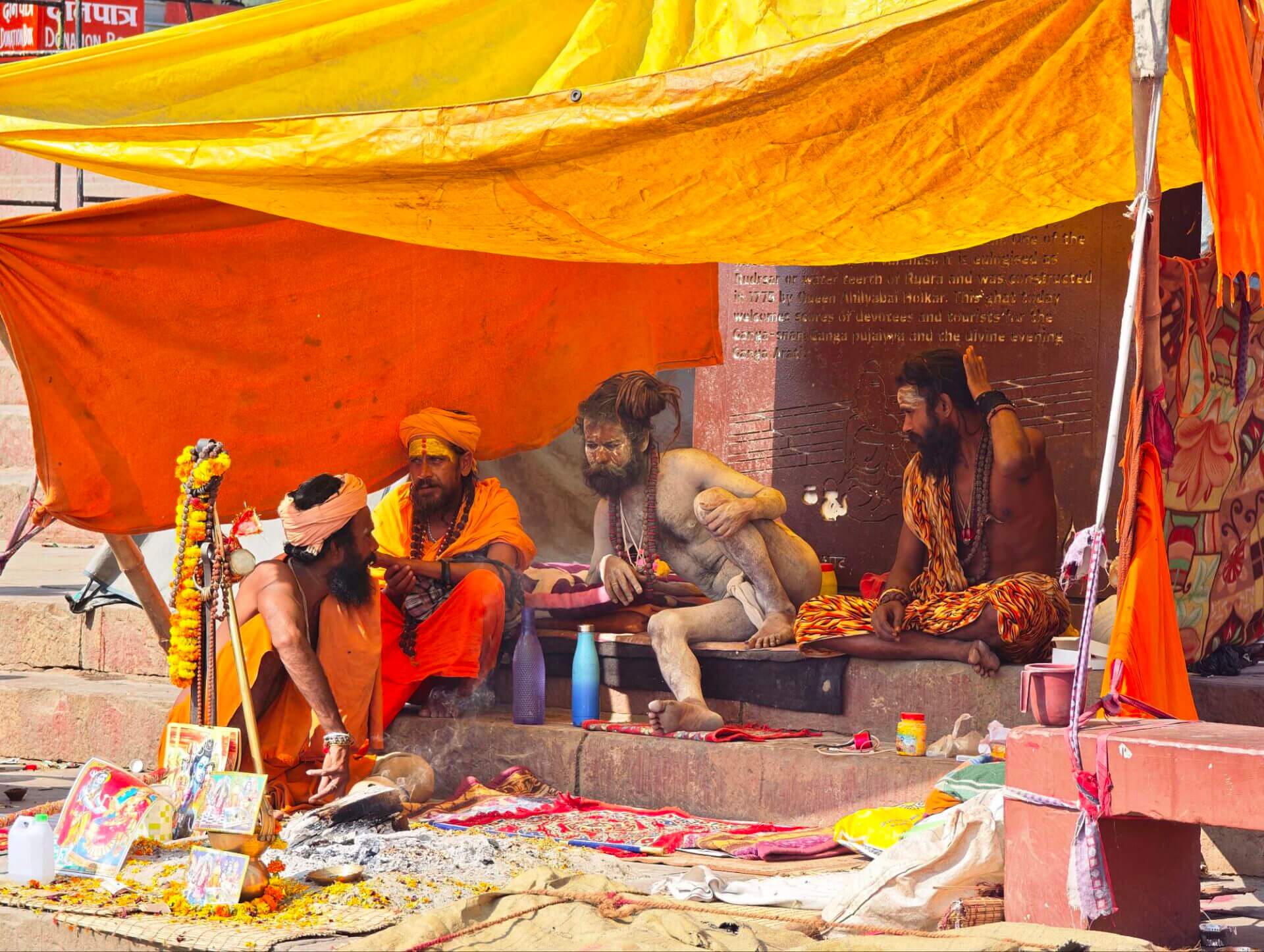 Herzstück der Stadt sind die Ghats, Uferstufen und Plattformen die zum heiligen Fluss führen. Kilometerlang ziehen sie sich dem Ganges entlang. Ort für Rituale, heilige Bäder, Kremierungen. Sadus, Asketen, eine Unmenge von Pilgern aus ganz Indien und Asien. Dazwischen einzelne Suchende und Touristen aus dem Westen. Und viele Einheimische die auf die unterschiedlichste Art dafür sorgen wollen, dass all die Besucher auch etwas Geld da lassen.