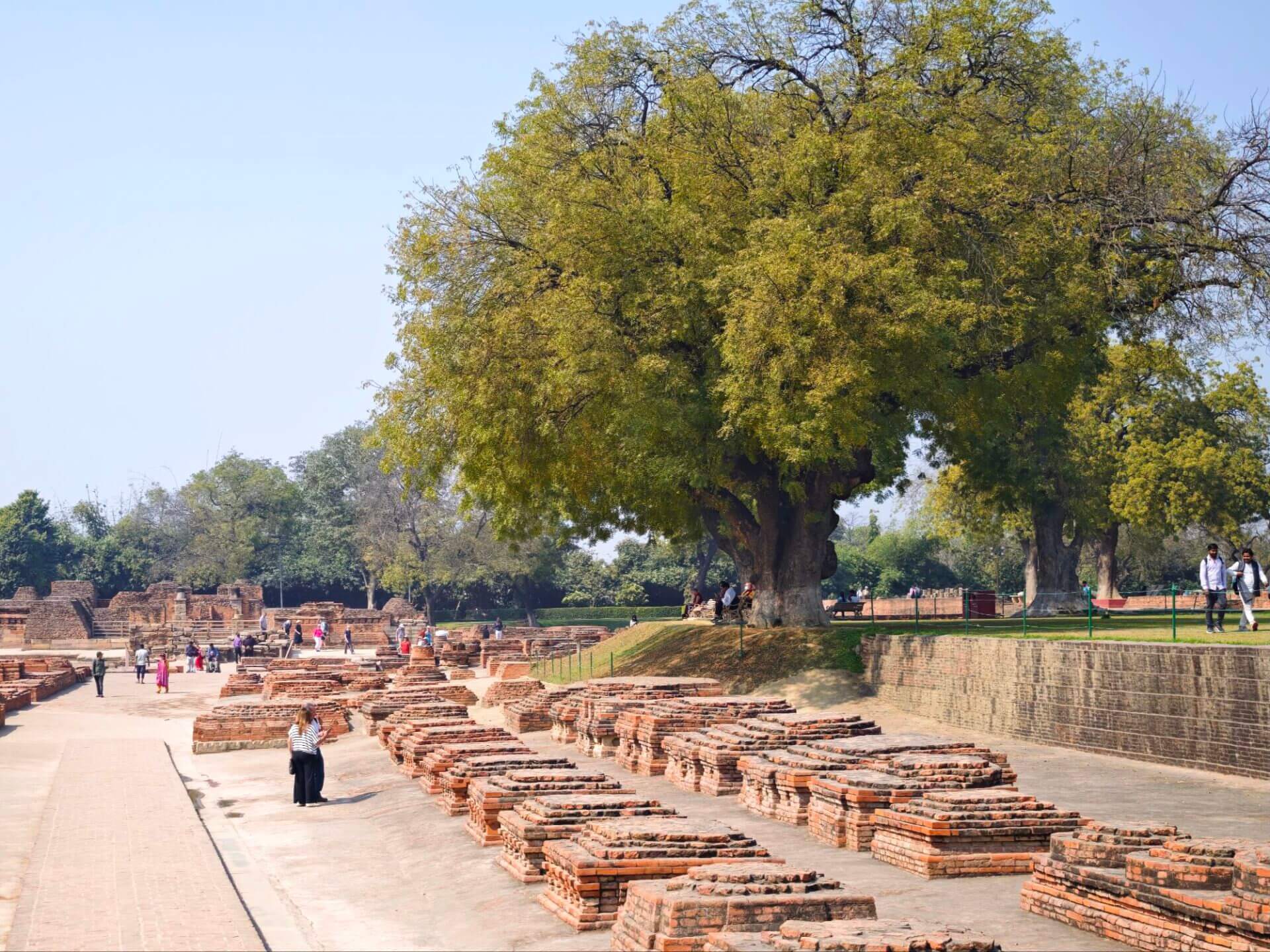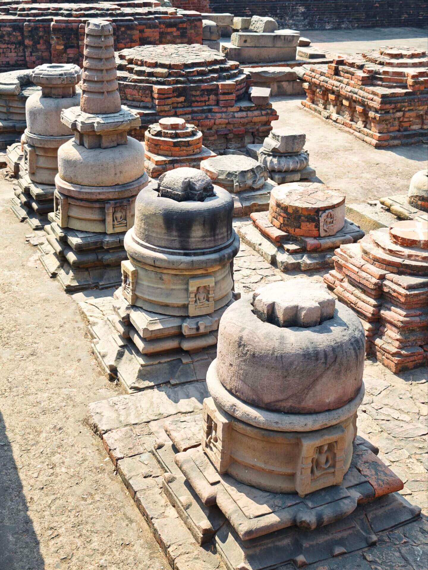 Obwohl es Weltkulturerbestätte ist, hatte ich Nalanda ursprünglich nicht auf dem Plan, da Ruinen von Universitäten nicht mein Interessenschwerpunkt sind. Tatsächlich handelte es sich bei der „Universität“ aber um das geistige Zentrum des Buddhismus und Jainismus. Vermutlich 5. Jhd. vor bis 6. Jhd. nach Christus. Entlang einer Längsachse sind an der Nordseite die Ruinen von 14 Klöstern und jeweils gegenüber von 14 Tempeln erhalten. Schon spannender.