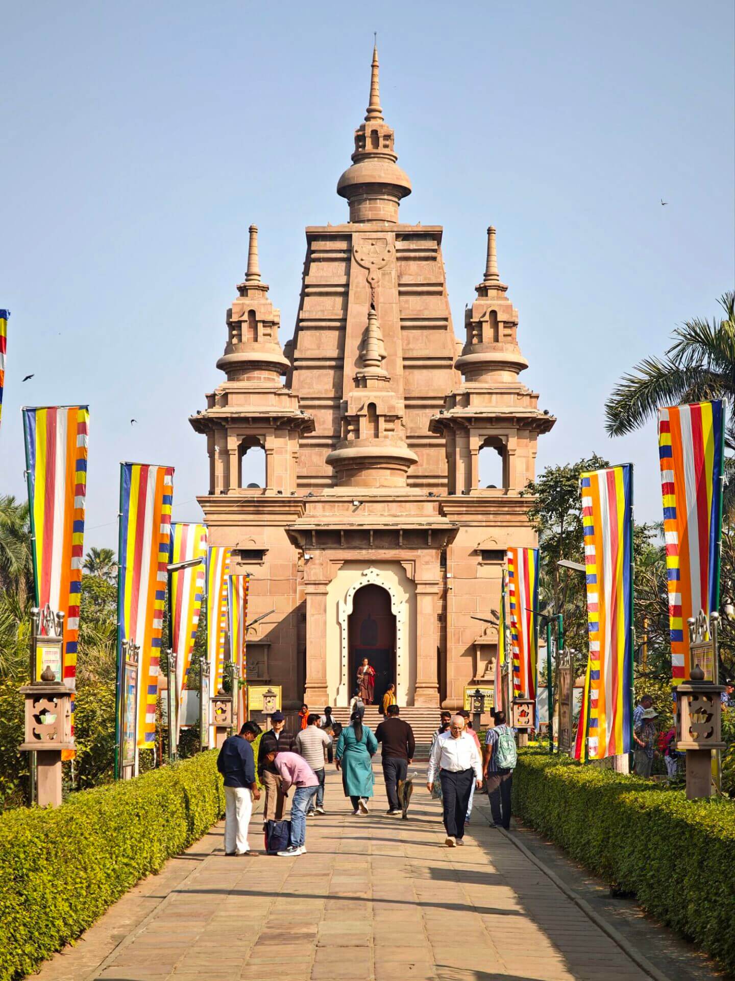 Der Tempel liegt auf einem Hügel außerhalb. Zum Unverständnis der TukTuk-Fahrer und der vielen die unterwegs ungefragt anhalten um mich mitzunehmen, gehe ich die acht Kilometer vom letzten größeren Dorf hin und zurück zu Fuß und genieße die relative Ruhe außerhalb dem Lärm und Chaos in den Orten und die Sonne über dem heute grünen Bihar.