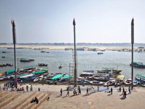 Mit der Bahn reise ich weiter in die heilige Stadt am Ganges und so von Bihar in den Bundesstaat Uttar Pradesh. Eine Stadt der Superlative: Mit etwa 3200 Jahren ist Varanasi einer der am längsten durchgängig besiedelten Orte der Welt. Mit ca. 1,8 Millionen Menschen ist es nur die fünft größte Stadt in Uttar Pradesh, aber eine der bevölkerungsdichtesten Großstädte der Welt. Insbesondere aber ist Varanasi heiligste Stadt im Hinduismus und hat für viele Hindus eine einzigartige Stellung: Varanasi gilt als Wohnort Shivas der dort besonders präsent sein soll. Der Ganges wird als Göttin, Mutter Ganga, verehrt. Stundenlang laufe ich entlang der Ghats und durch die Straßen und Gassen der Altstadt und versuche zu sehen was ist sehe.