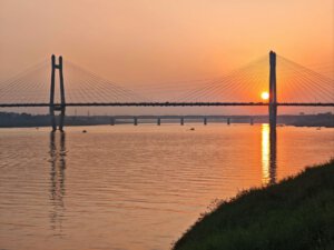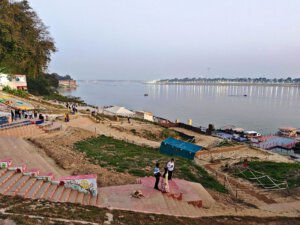 Am zweiten Tag in Prayagraj steife ich durch den Bezirk vor der Altstadt und erlebe ein etwas moderneres Indien. Vor dem Sonnenuntergang lasse ich mich mit dem Bike aber nochmal zum Sangam rausfahren. Es ist deutlich ruhiger als gestern. Soweit in diesem Land von Ruhe die Rede sein kann: Zurück am Homestay informiert mich ein Willkommensschild darüber, dass der Geburtstag im zweiten Stock gefeiert wird. Ohrenbetäubender Lärm füllt das Haus bis weit nach Mitternacht. An Schlaf ist auch bei mir im ersten Stock nicht zu denken. Ich wünsche der kleinen Saranya alles Gute. Und dass sie die Feier ihres zweiten Geburtstags nicht miterleben musste.