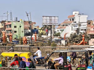 Für einen Tag fahre ich aus der Stadt Shivas, Varanasi, in das benachbarte buddhistische Sarnath. Für die jeweils knapp 15 Kilometer traue ich mich (nachdem ich mich an die TukTuk-Fahrten durch den chaotischen Verkehr etwas gewöhnt habe) erstmals auf das Verkehrsmittel das mir als Alleinreisenden geziemt: Sozius auf dem (Uper-)Bike.
