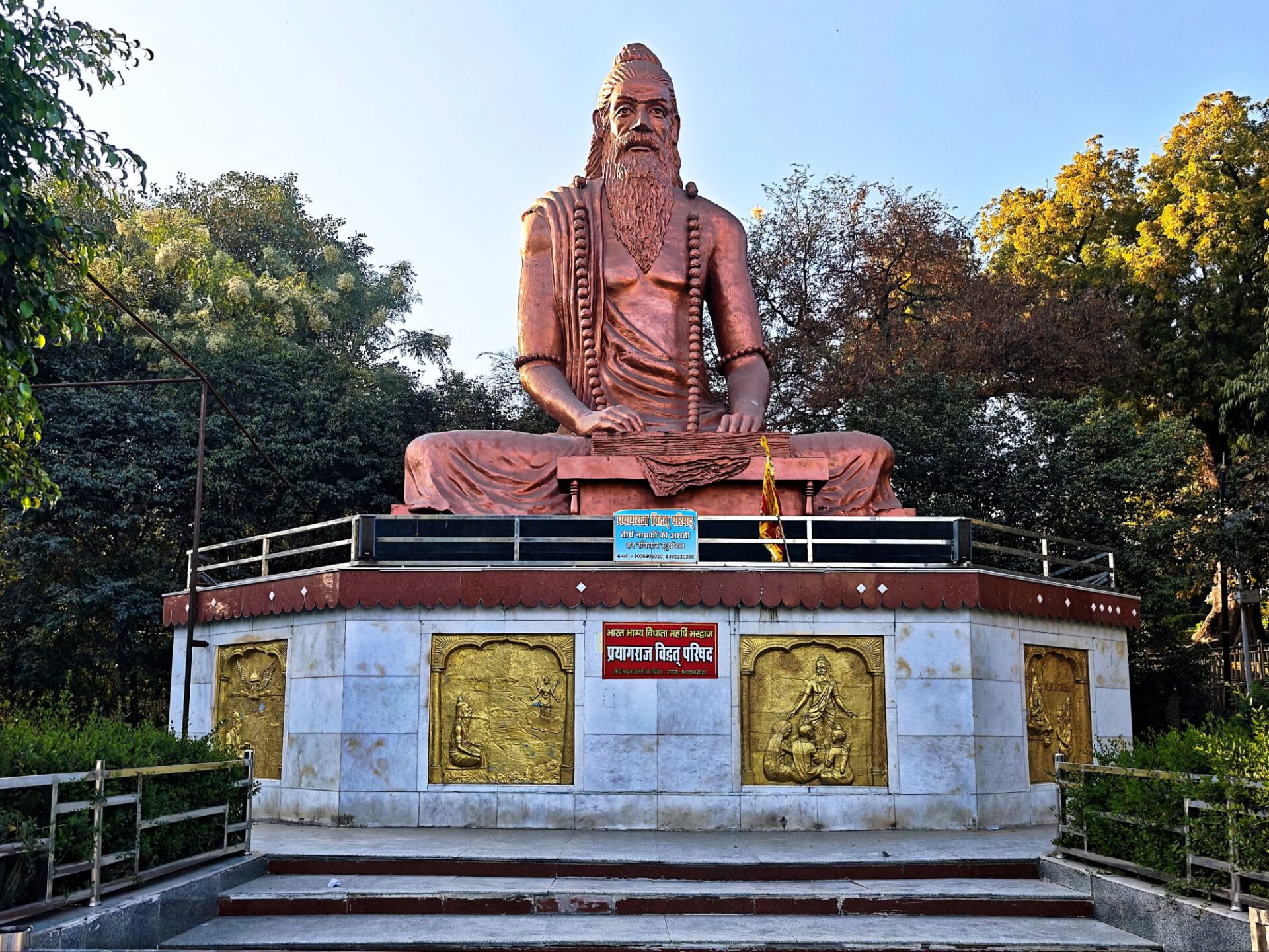 Prayagraj, bis 2018 Allahabad, 1,2 Millionen Einwohner, 130 Kilometer westlich von Varanasi. Und nach Varanasi die zweitwichtigste Pilgerstadt im Hinduismus. Diesen Status verdankt die Stadt ihrer Lage am Triveni Sangam: Dem Zusammenfluss der beiden heiligsten Flüsse Indiens, dem Ganges sowie der Yamuna, die in über 6000 Meter Höhe im Himalaya entspringt und als „Zwilling“ 1400 Kilometer parallel zum Ganges fließt, bevor sie hier in den großen Bruder mündet. Sowie dem mystischen unterirdischen Fluss Sarasvati. Entsprechenden Stellenwert hat ein Bad am Zusammenfluss, dem Sangam, für die Pilger.