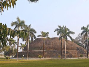 Etwas außerhalb liegt die Ramabhar Stupa mit Bauelementen aus dem 3. Jhd. v. Chr., die den Ort markiert an dem der Leichnam Buddhas verbrannt wurde. „Buddha’s Relic Distribution Site“ hingegen ist der Platz, von dem seit 1500 Jahren davon ausgegangen wird, dass hier der Streit um seine Reliquien (bzw. Asche) entbrannte, bevor ein Brahmane sie in acht Teile aufteilte und so acht Regionalfürste in ihren Reichen Stupas für die Reliquien errichten konnten. Der Matha-Kuar-Schrein beherbergt eine sitzende Buddha Statue aus dem 10. Jahrhundert.