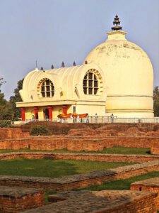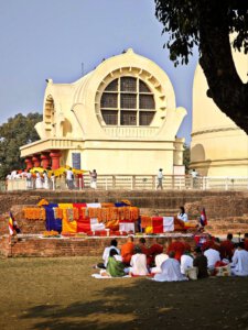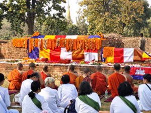 Nach Bodh Gaya, dem Ort der Erleuchtung und Sarnath, dem Ort der ersten Lehrrede, nun also Kushinagar, der Ort des Sterbens bzw. des Erreichens von Parinirvana, restlosem Nirvana, des Gautama Buddha um 483 vor Christus. Auch hier ist der Ansturm geringer als in Bodh Gaya aber ich erlebe wieder buddhistische Pilgergruppen aus ganz Asien.