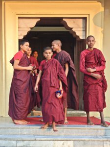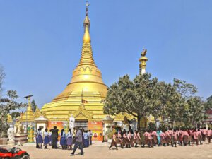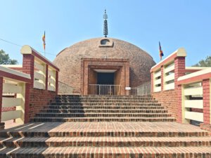Mit dem Bus fahre ich etwa 50 Kilometer nach Osten. Nach dem eher „schwierigen“ Gorakhpur ist die Kleinstadt Kushinagar, zumindest der Ortsteil mit den buddhistischen Heiligtümern, geradezu eine Oase.