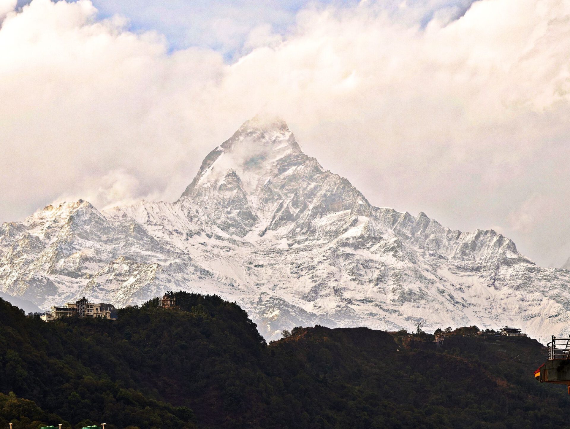 In Pokhara gibt es, nach einem Gewitter, diesmal das, was mir beim ersten Aufenthalt verwehrt blieb: Fernsicht. Statt von einem Aussichtspunkt, sehe ich die Gipfel des Annapurna Massiv nochmal von der Dachterrasse des Guesthouse.