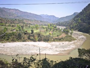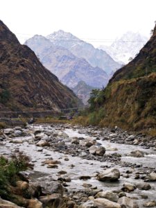 Als Tag der (Knie-) Schmerzen ist der Abstieg von Ghorepani (2.870 Höhenmeter) nach Tatopani (1.190 Höhenmeter) in die Etappenplanung eingepreist. Durch zwei Klimazonen geht es auf Pisten und Natursteintreppen zunächst durch den Bergwald und dann durch die subtropische Zone mit kleinen Dörfern der Margar-Volksgruppe, deren Gemüsegärten und Felder. So ist es tatsächlich eine tolle, farbenfrohe Wanderung, bevor es im letzten steilen Abstieg zum Kali-Gandaki-River hinunter geht, dem ich bereits bei der Busfahrt nach Pokhara (Opfergaben von der Brücke) begegnet bin und der hier, bzw in seinem oberen Verlauf (dem ich die kommenden Tage folgen werde) die tiefste Bergschlucht der Erde bildet.