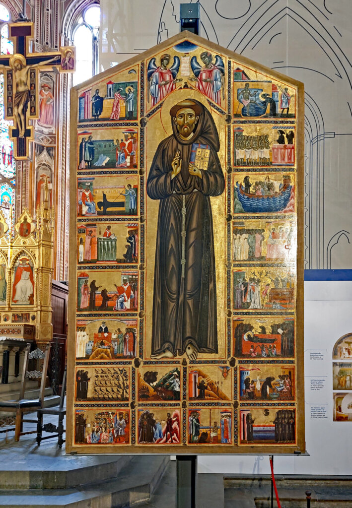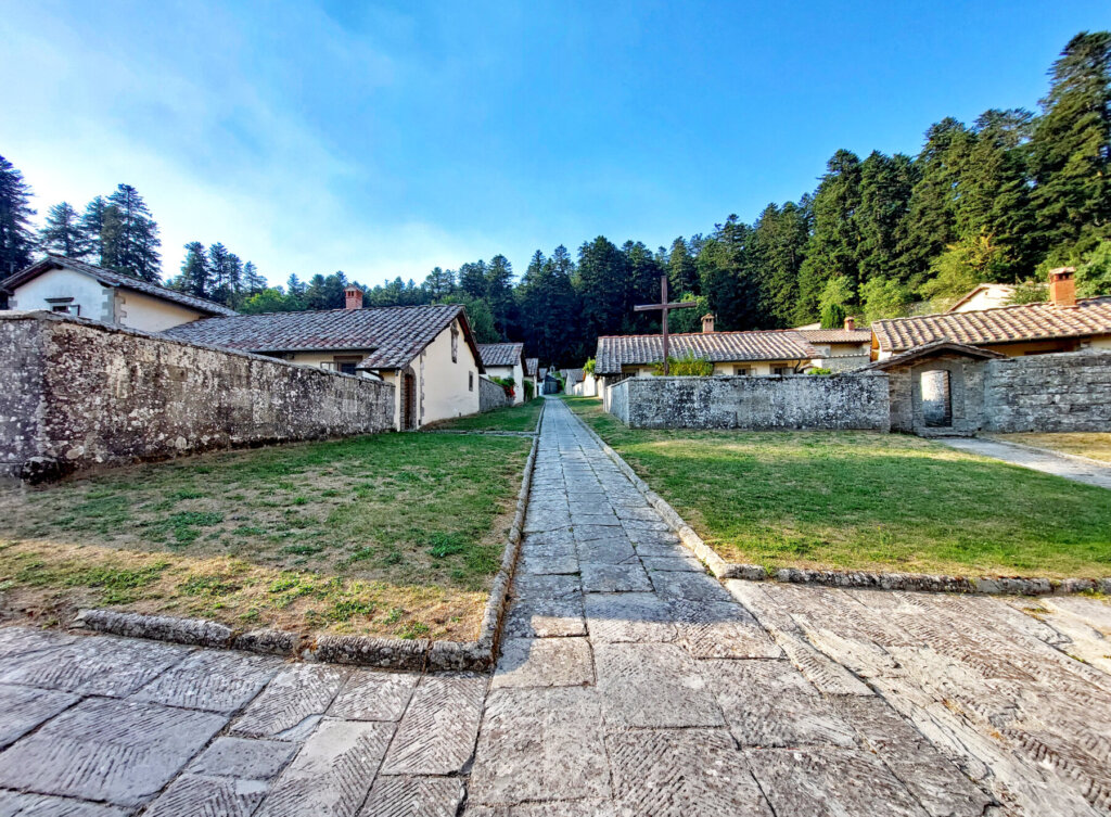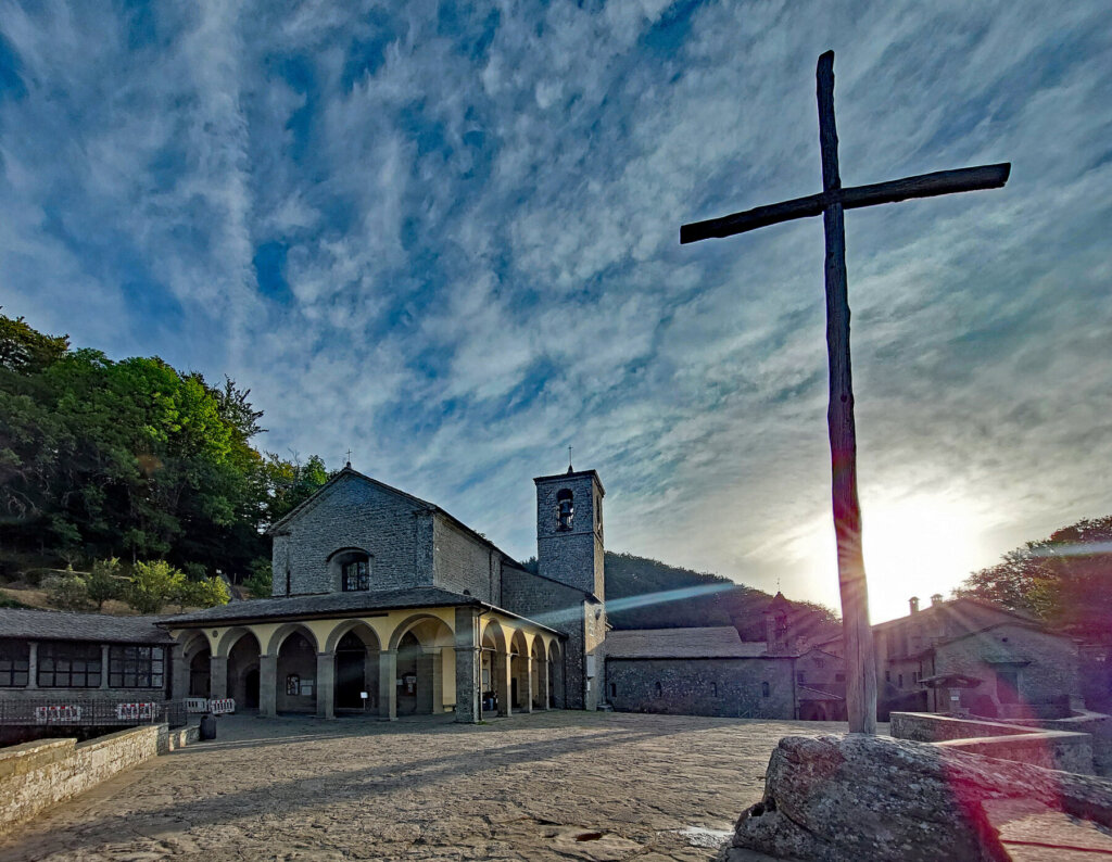 Florenz. Und von dort aus auf dem Pilgerweg Richtung Assisi durch die Toskana über Pontassieve (1. Tag), Passo della Consuma (2. Tag), Kloster Monastero di Camaldoli (3. Tag), das Franziskuskloster Monastero La Verna (4. Tag) Pieve Santo Stefano (5. Tag), Sansepolcro (6. Tag) und einem Abstecher nach Anghiari, nach Citta di Castello (7. Tag).