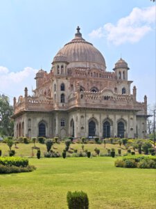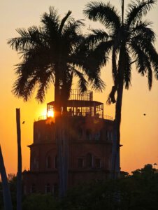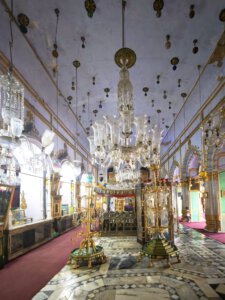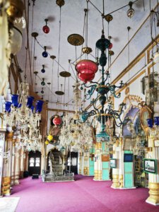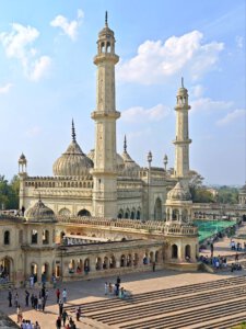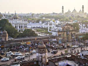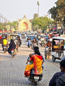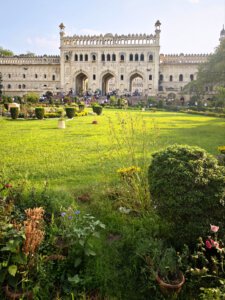 Lucknow, Hauptstadt des Bundesstaates Uttar Pradesh, rund drei Millionen Einwohner, wahrscheinlich mehr. Auf der Durchreise habe ich nur einen halben Tag dafür geplant, aber meine Tage können lang sein. Die Sehenswürdigkeiten aus der Zeit der späten Mogule, 18. bis 19. Jahrhundert, konzentrieren sich auf das Stadtzentrum. Ich konzentriere mich heute nicht auf Tempel, sondern auf zwei außergewöhnliche Imambaras, schiitisch islamische Versammlungs- und Gedenkstätten. Die Halle der Bara Imambara ist riesig, ihre Gewölbedecke gehört zu den größten stützenlosen der Welt. Darüber befindet sich, unter zwei schönen Dachterrassen, ein dreidimensionales, d.h. sich über drei Stockwerke erstreckendes Labyrinth. Aus solches nehme ich es zunächst nicht sehr ernst, beinahe kostet mich das meinen halben Tag. Die kleinere Chhota Imambara glänzt mit ihrer Innenausstattung: „Palace of Lights“. Die Lage auf unserer Welt bleibt in den islamischen Heiligtümern nicht außen vor: Schmähende israelische und amerikanische Flaggen kleben auf Mülleimern.