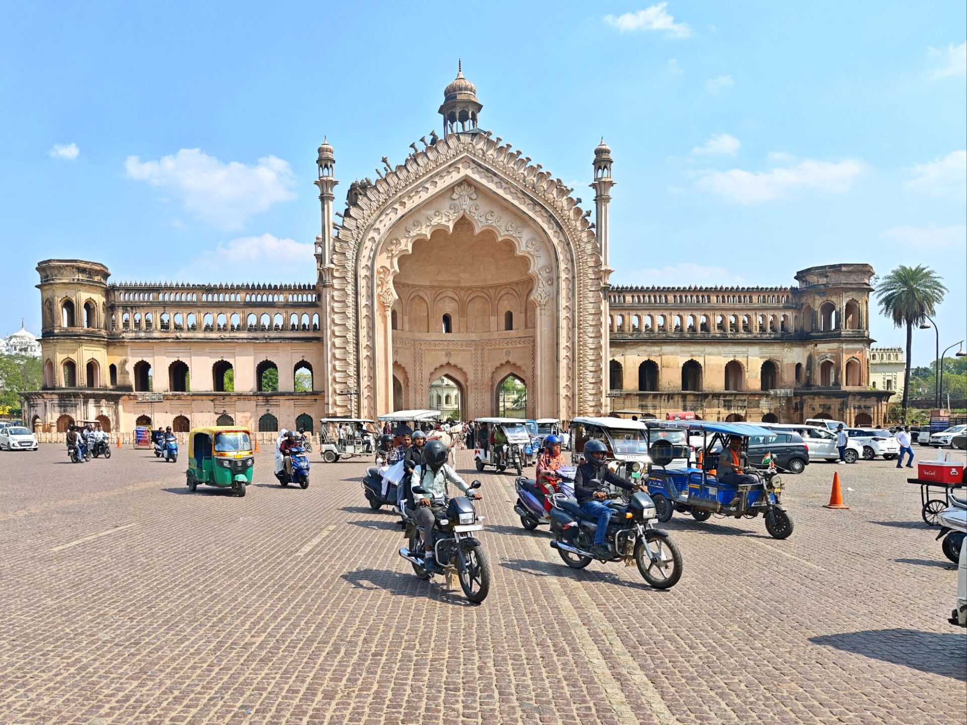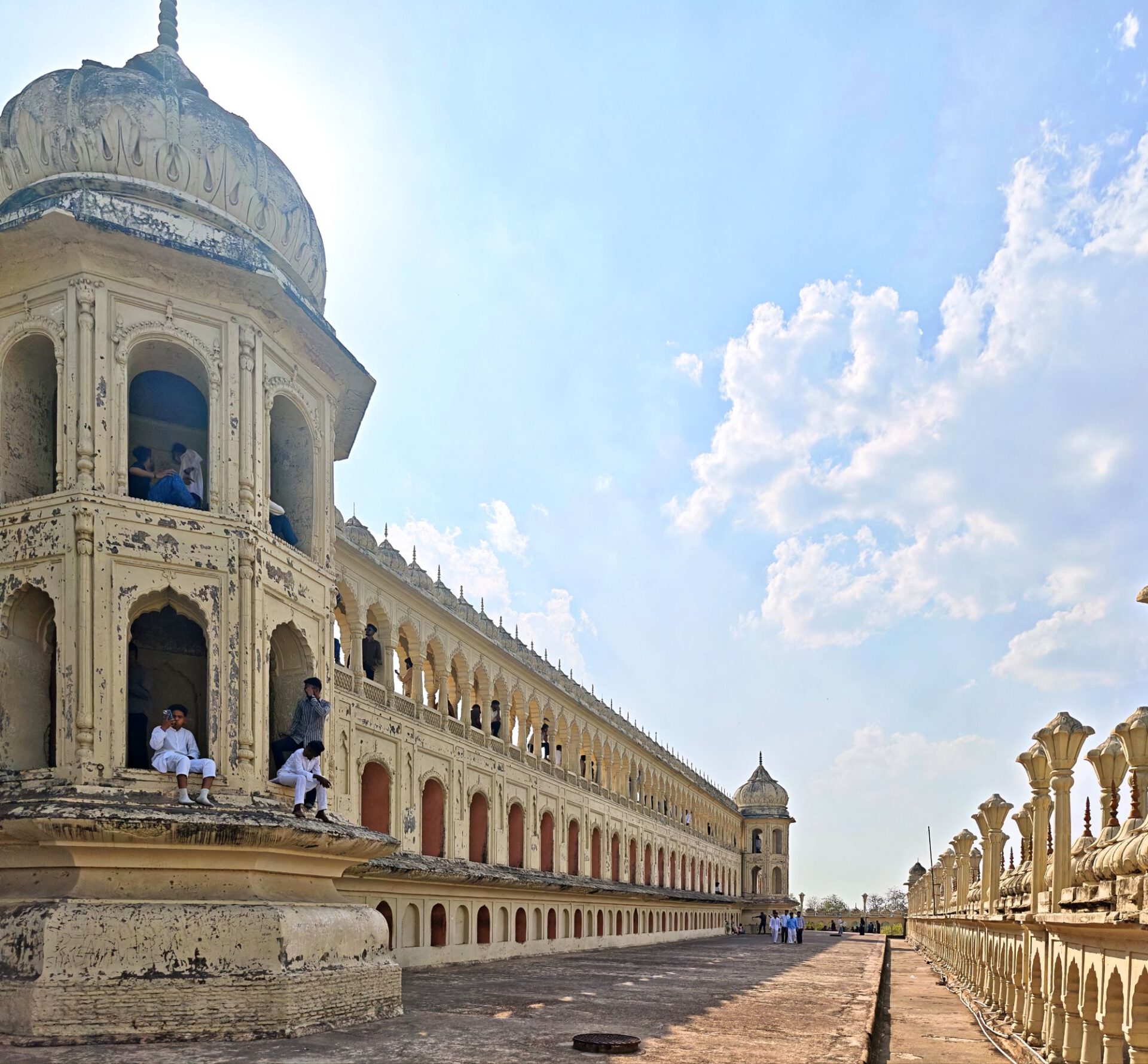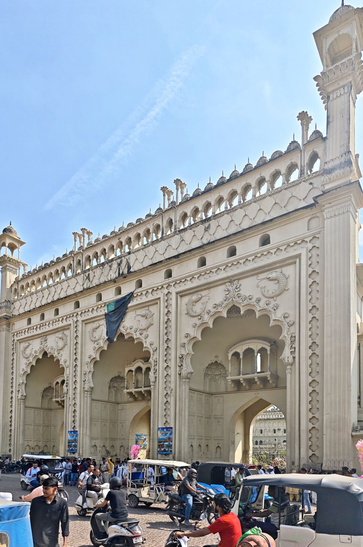 Zwischen den beiden Imambaras steht das berühmte Stadttor Rumi Darwaza, das der muslimische Herrscher des damaligen Fürstentum ebenfalls im 18. Jahrhundert bauen ließ. Und ganz viel indisches Leben. Zum Abendessen gibt es wieder Streetfood bunt gemischt, vom Food Court am Tor.