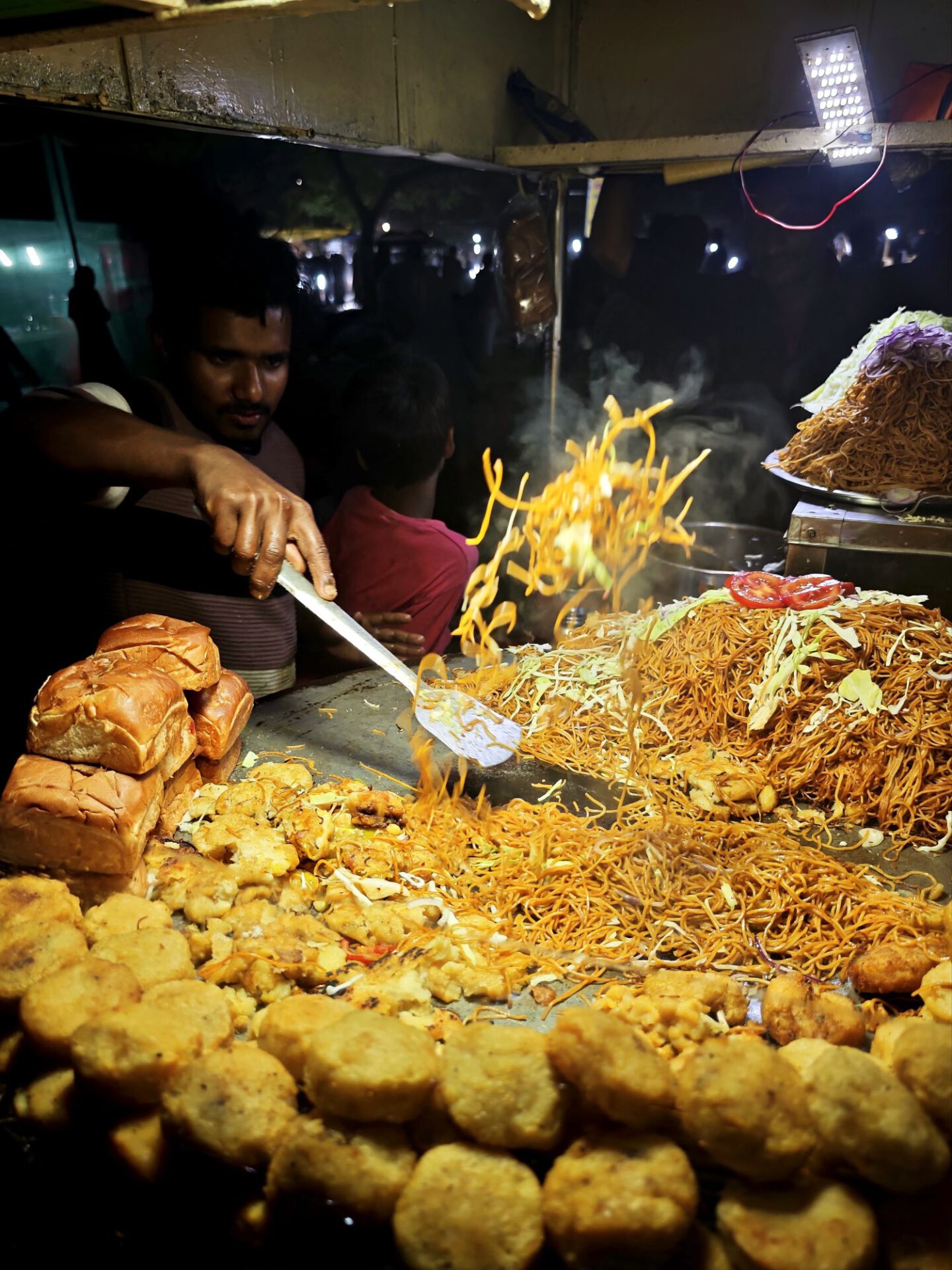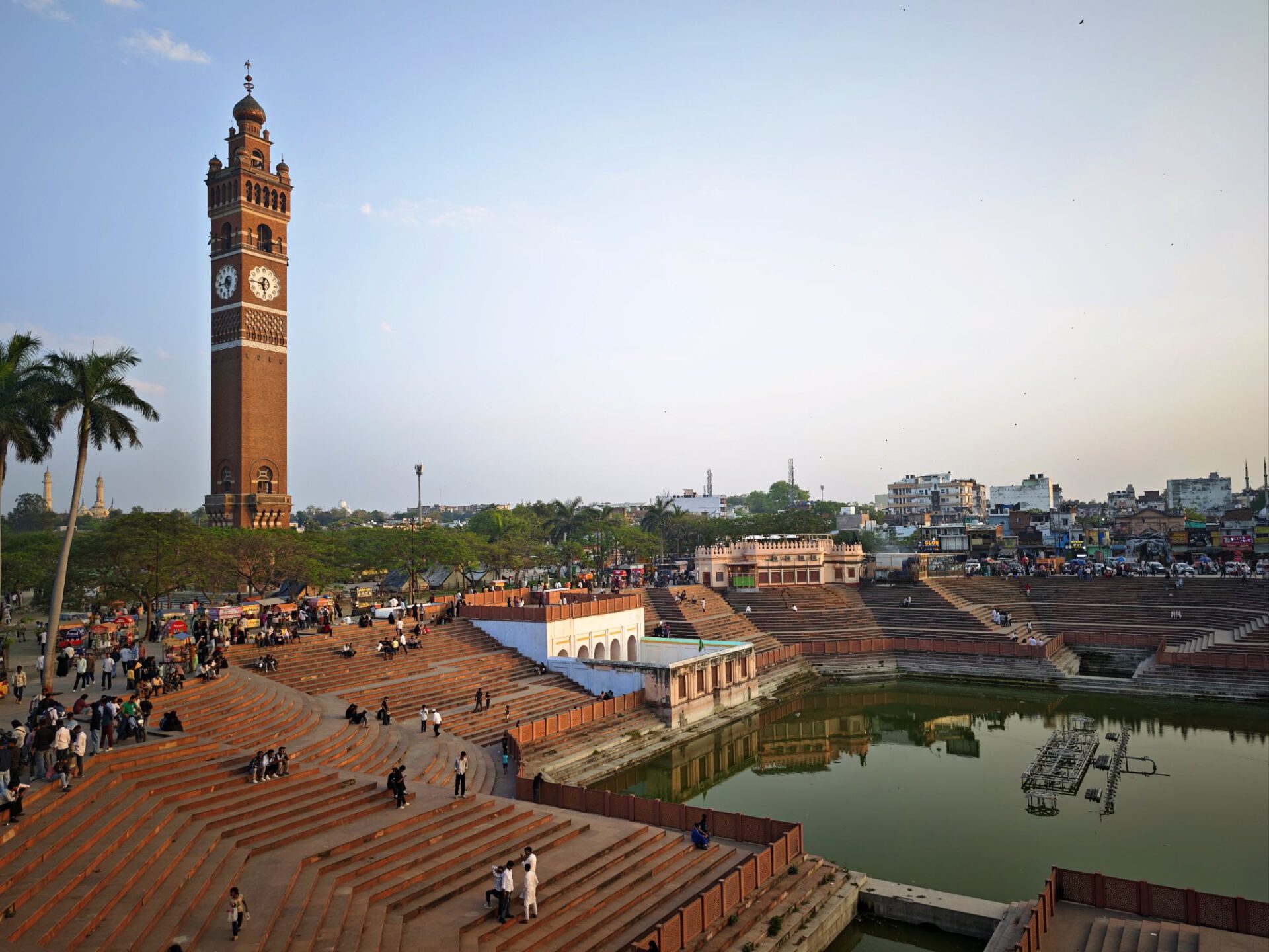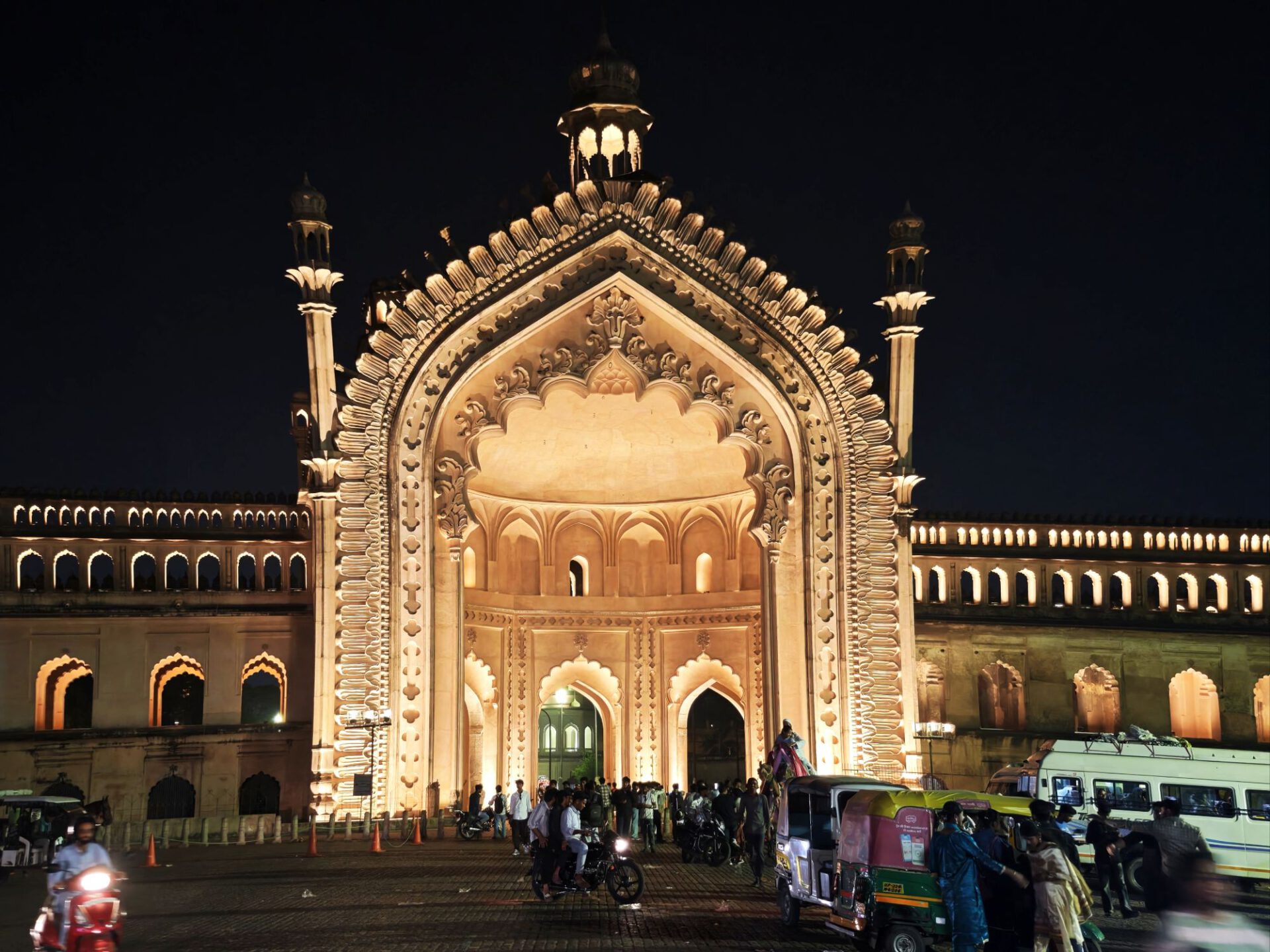 Zwischen den beiden Imambaras steht das berühmte Stadttor Rumi Darwaza, das der muslimische Herrscher des damaligen Fürstentum ebenfalls im 18. Jahrhundert bauen ließ. Und ganz viel indisches Leben. Zum Abendessen gibt es wieder Streetfood bunt gemischt, vom Food Court am Tor.
