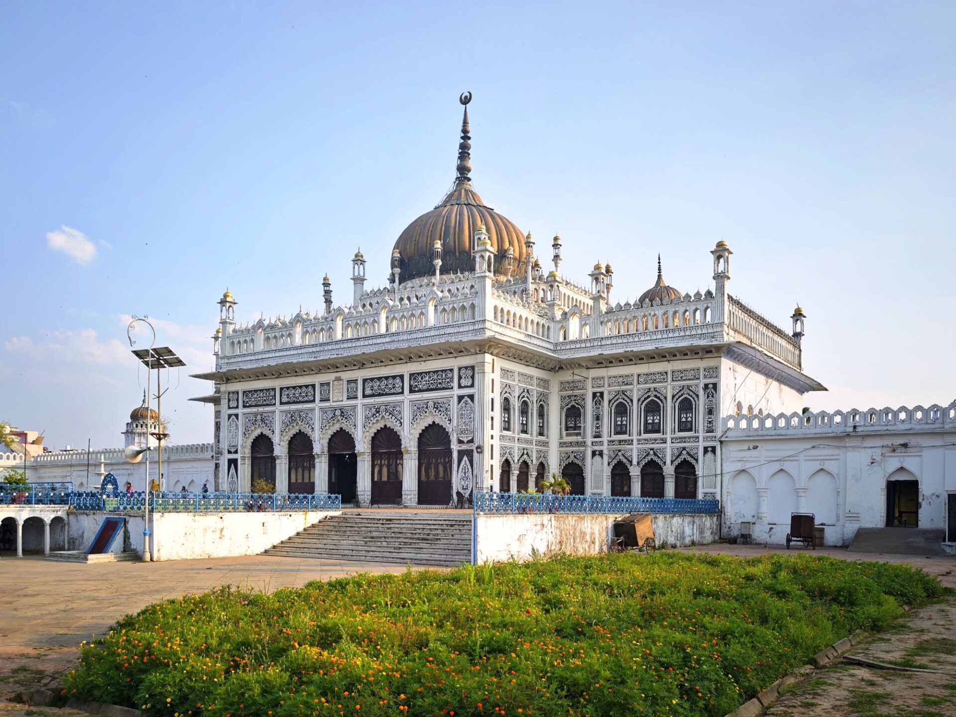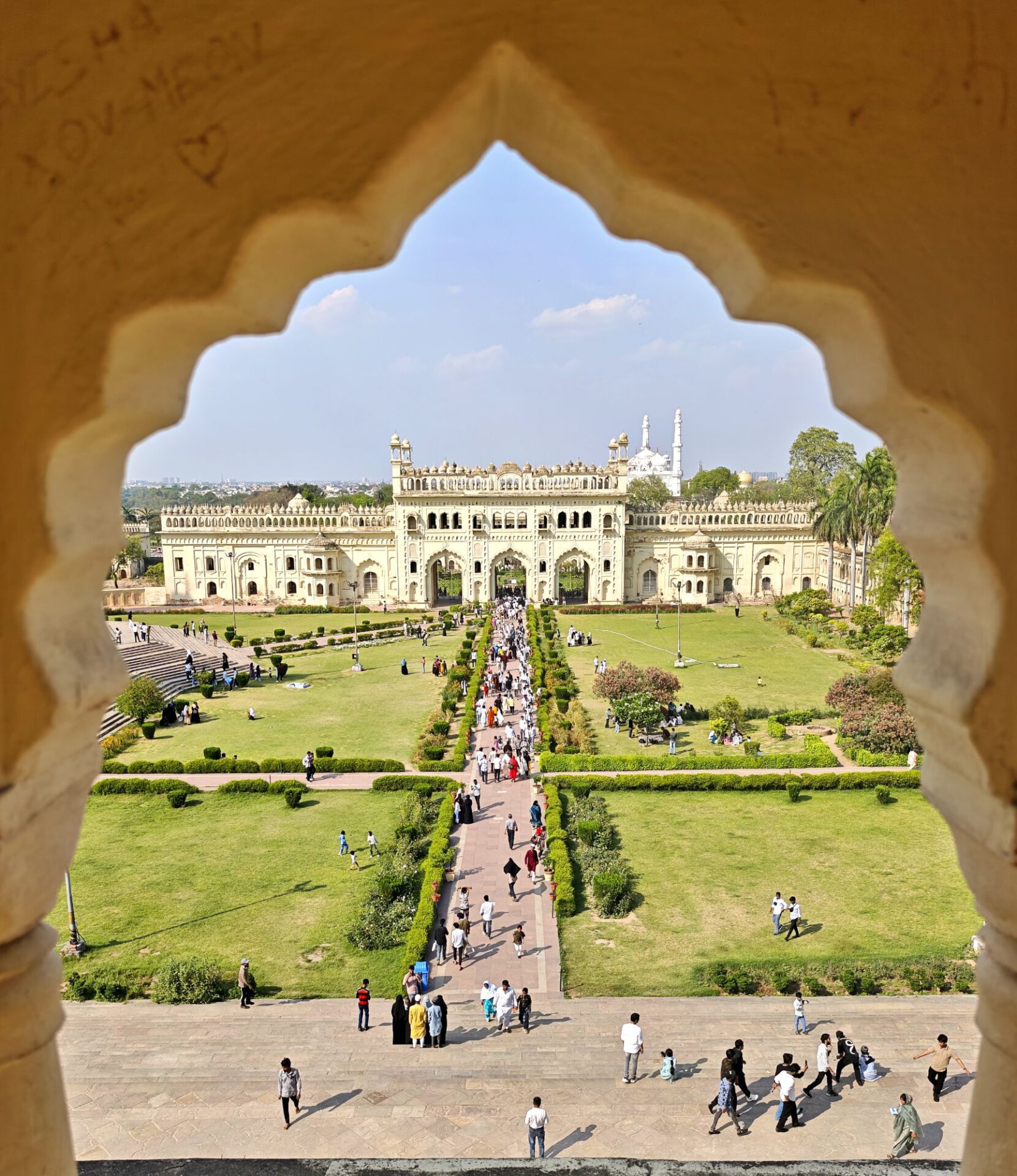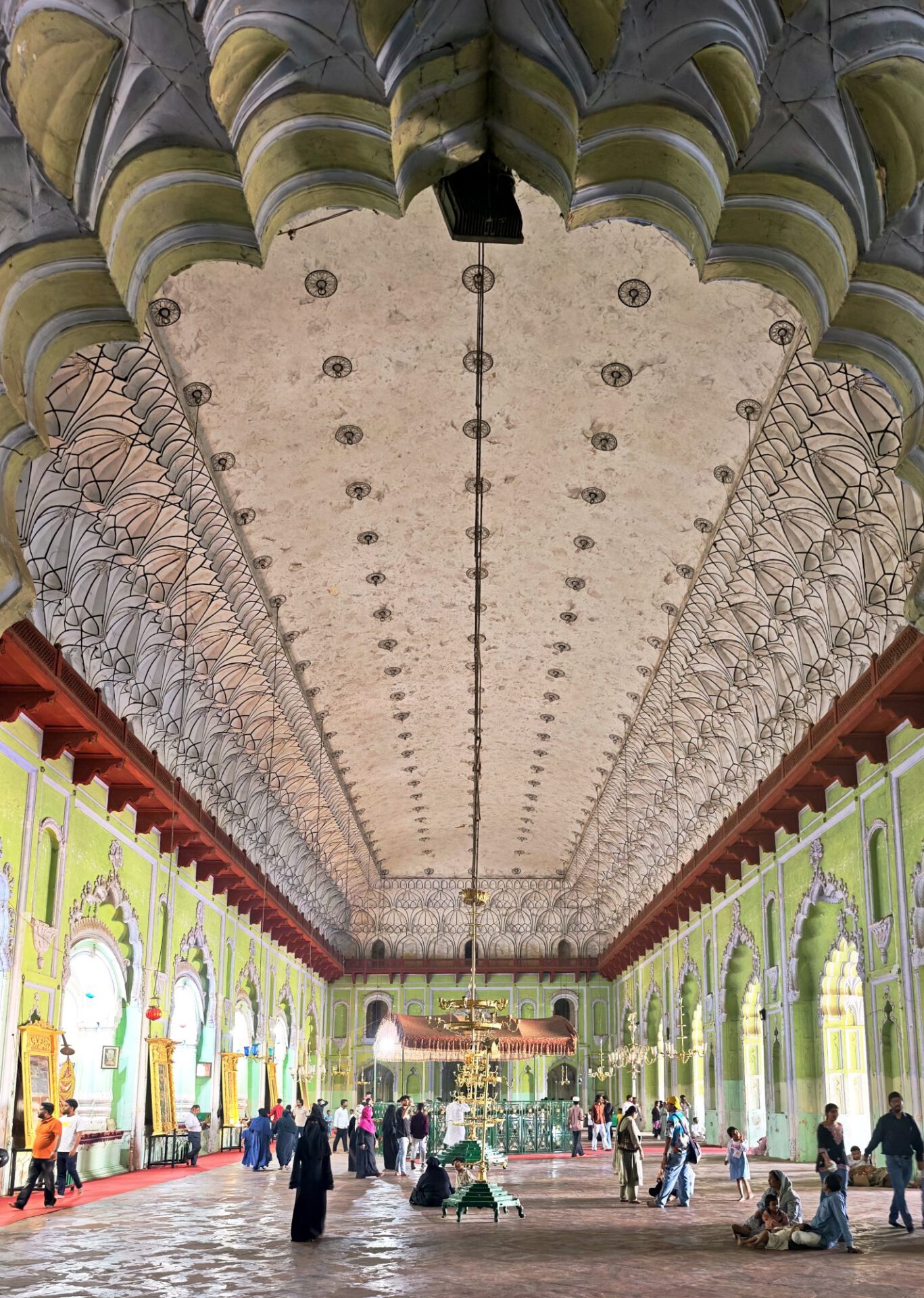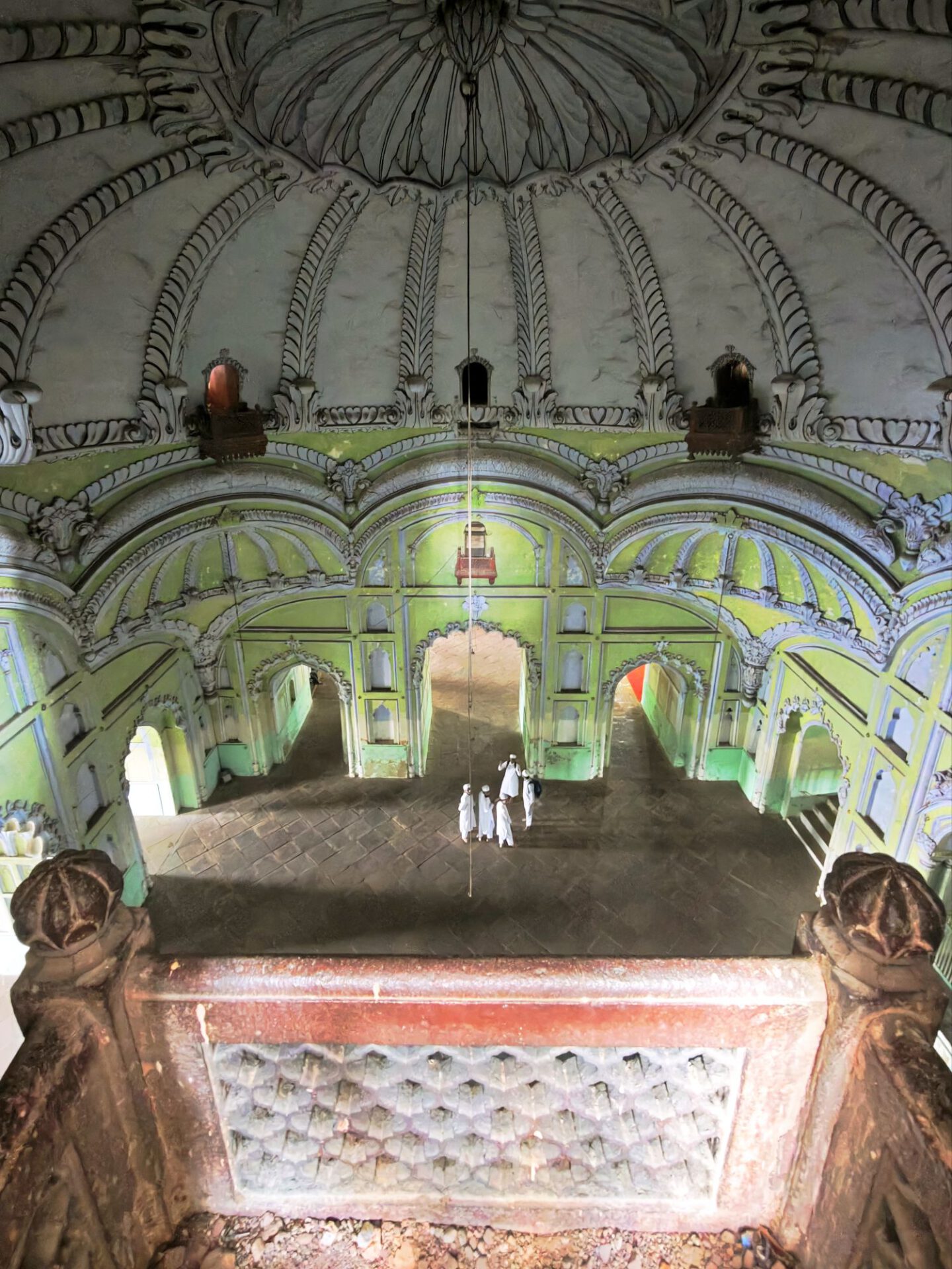 Lucknow, Hauptstadt des Bundesstaates Uttar Pradesh, rund drei Millionen Einwohner, wahrscheinlich mehr. Auf der Durchreise habe ich nur einen halben Tag dafür geplant, aber meine Tage können lang sein. Die Sehenswürdigkeiten aus der Zeit der späten Mogule, 18. bis 19. Jahrhundert, konzentrieren sich auf das Stadtzentrum. Ich konzentriere mich heute nicht auf Tempel, sondern auf zwei außergewöhnliche Imambaras, schiitisch islamische Versammlungs- und Gedenkstätten. Die Halle der Bara Imambara ist riesig, ihre Gewölbedecke gehört zu den größten stützenlosen der Welt. Darüber befindet sich, unter zwei schönen Dachterrassen, ein dreidimensionales, d.h. sich über drei Stockwerke erstreckendes Labyrinth. Aus solches nehme ich es zunächst nicht sehr ernst, beinahe kostet mich das meinen halben Tag. Die kleinere Chhota Imambara glänzt mit ihrer Innenausstattung: „Palace of Lights“. Die Lage auf unserer Welt bleibt in den islamischen Heiligtümern nicht außen vor: Schmähende israelische und amerikanische Flaggen kleben auf Mülleimern.