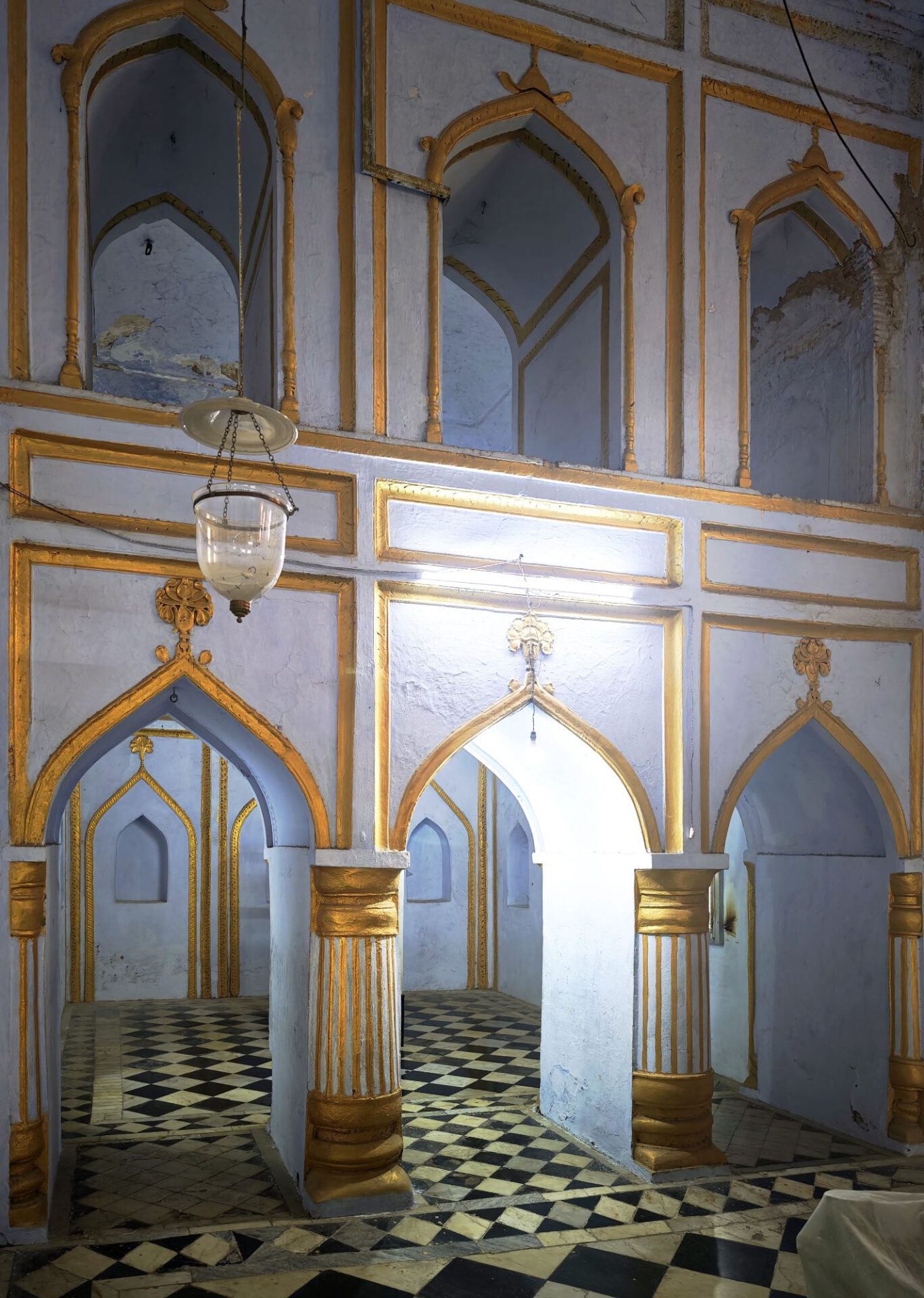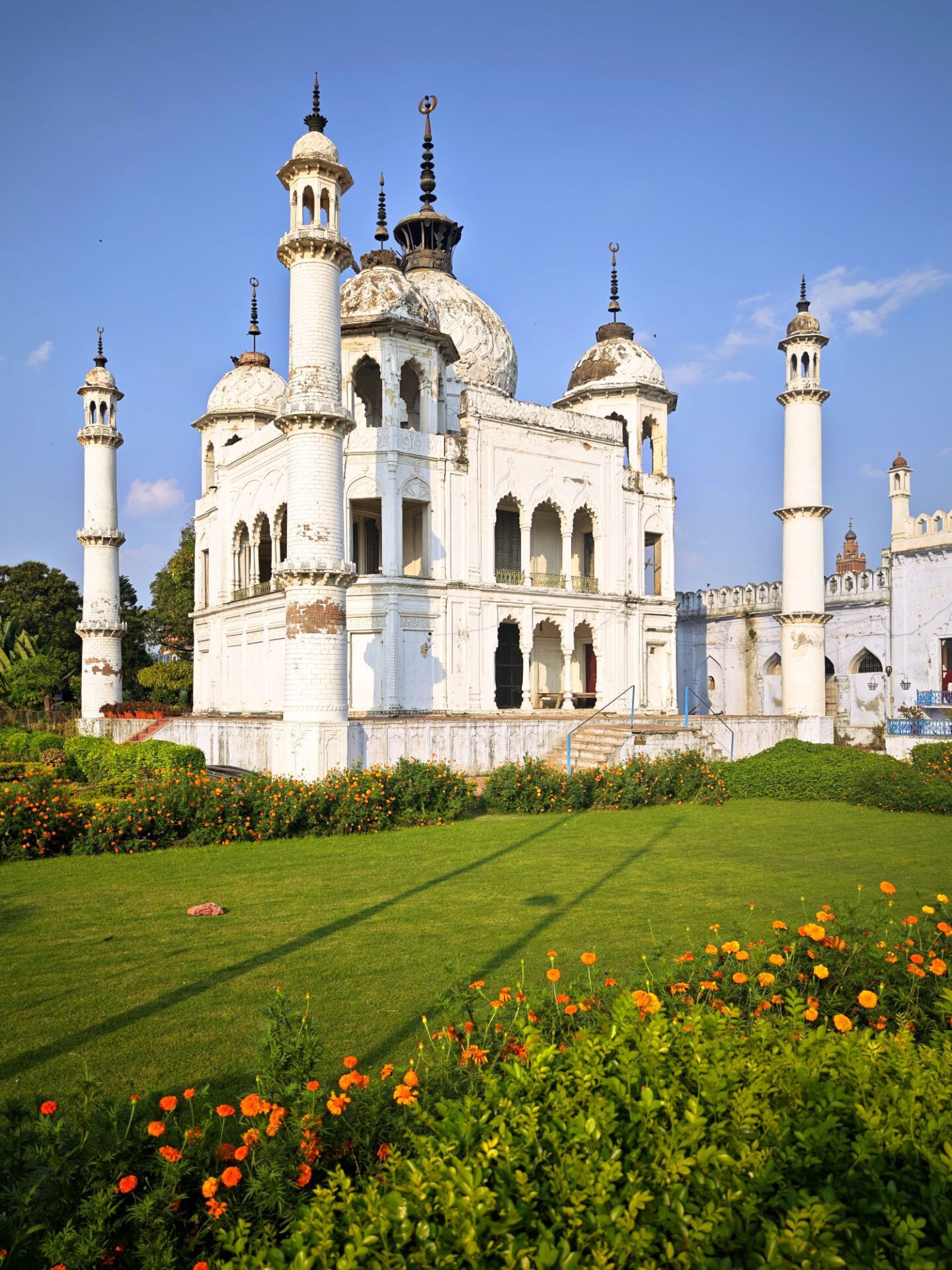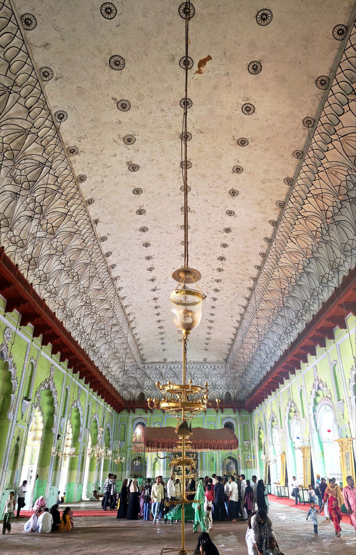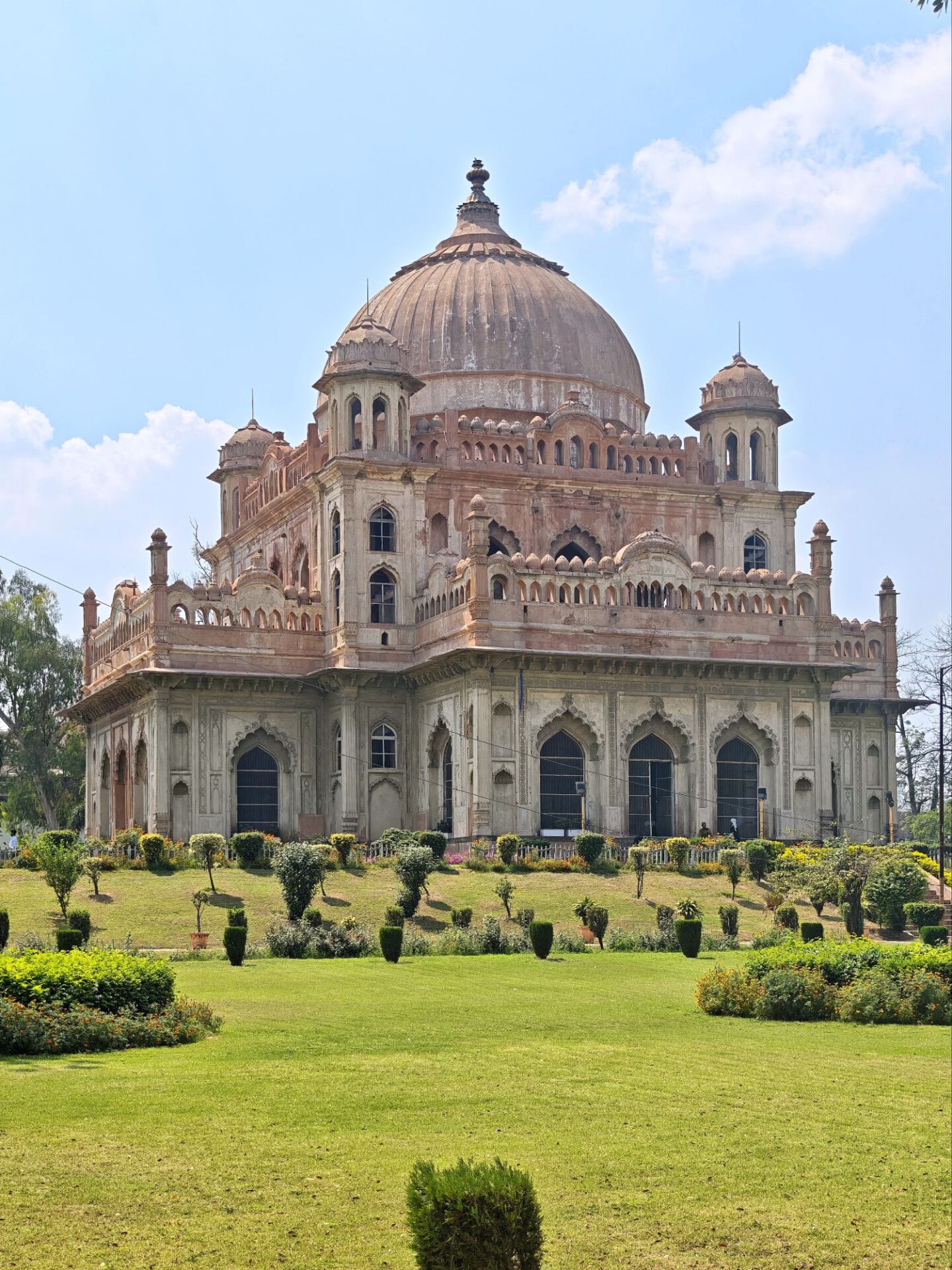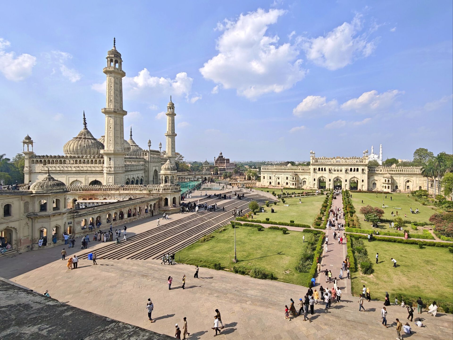 Lucknow, Hauptstadt des Bundesstaates Uttar Pradesh, rund drei Millionen Einwohner, wahrscheinlich mehr. Auf der Durchreise habe ich nur einen halben Tag dafür geplant, aber meine Tage können lang sein. Die Sehenswürdigkeiten aus der Zeit der späten Mogule, 18. bis 19. Jahrhundert, konzentrieren sich auf das Stadtzentrum. Ich konzentriere mich heute nicht auf Tempel, sondern auf zwei außergewöhnliche Imambaras, schiitisch islamische Versammlungs- und Gedenkstätten. Die Halle der Bara Imambara ist riesig, ihre Gewölbedecke gehört zu den größten stützenlosen der Welt. Darüber befindet sich, unter zwei schönen Dachterrassen, ein dreidimensionales, d.h. sich über drei Stockwerke erstreckendes Labyrinth. Aus solches nehme ich es zunächst nicht sehr ernst, beinahe kostet mich das meinen halben Tag. Die kleinere Chhota Imambara glänzt mit ihrer Innenausstattung: „Palace of Lights“. Die Lage auf unserer Welt bleibt in den islamischen Heiligtümern nicht außen vor: Schmähende israelische und amerikanische Flaggen kleben auf Mülleimern.