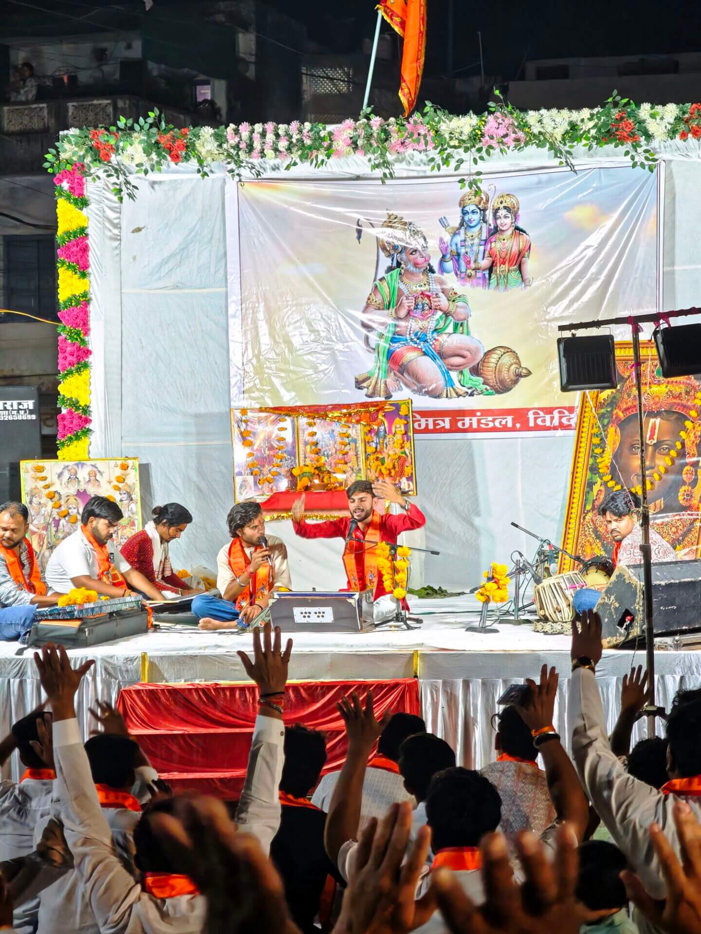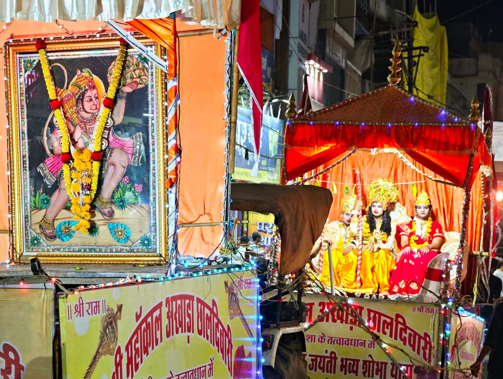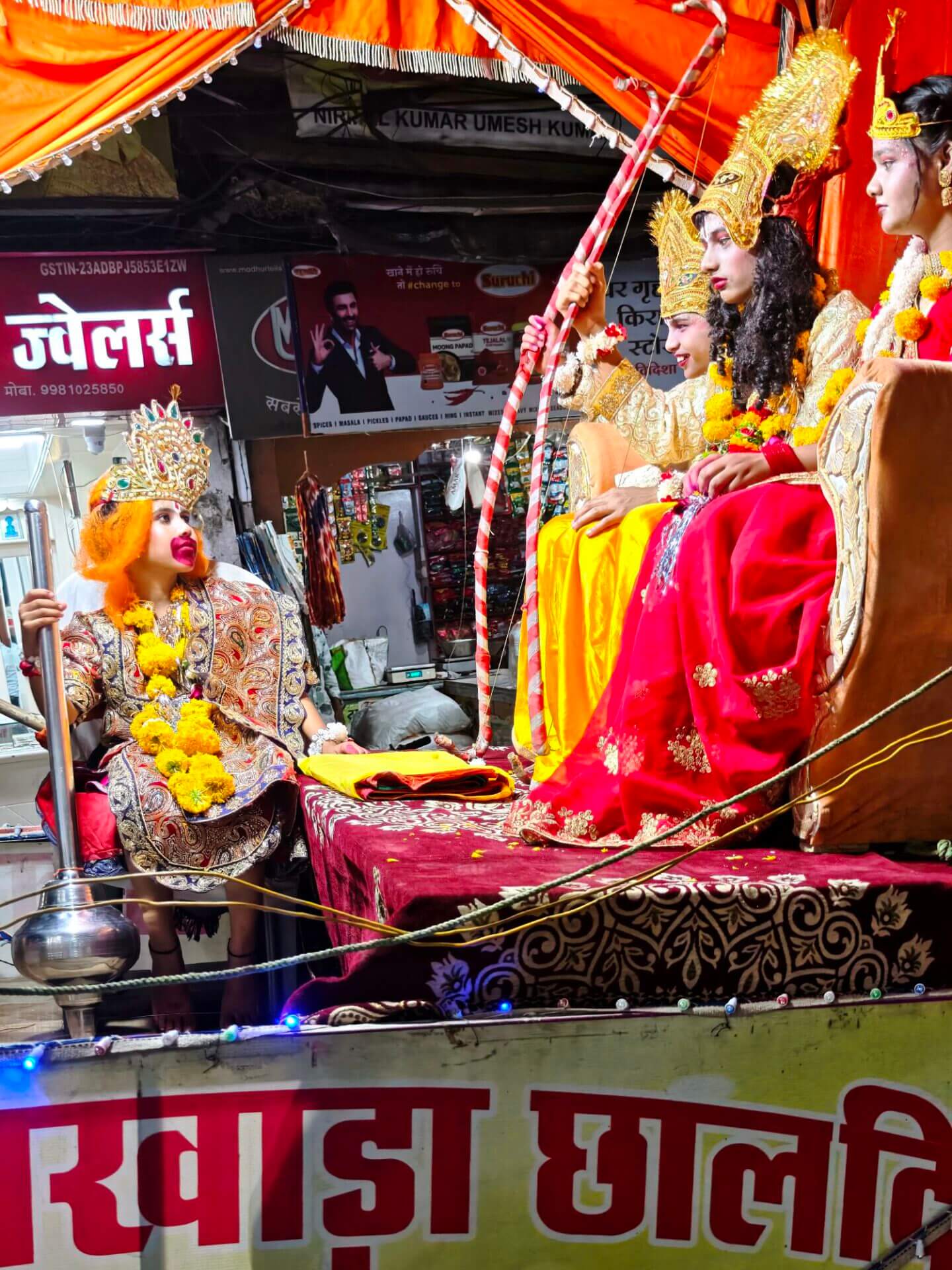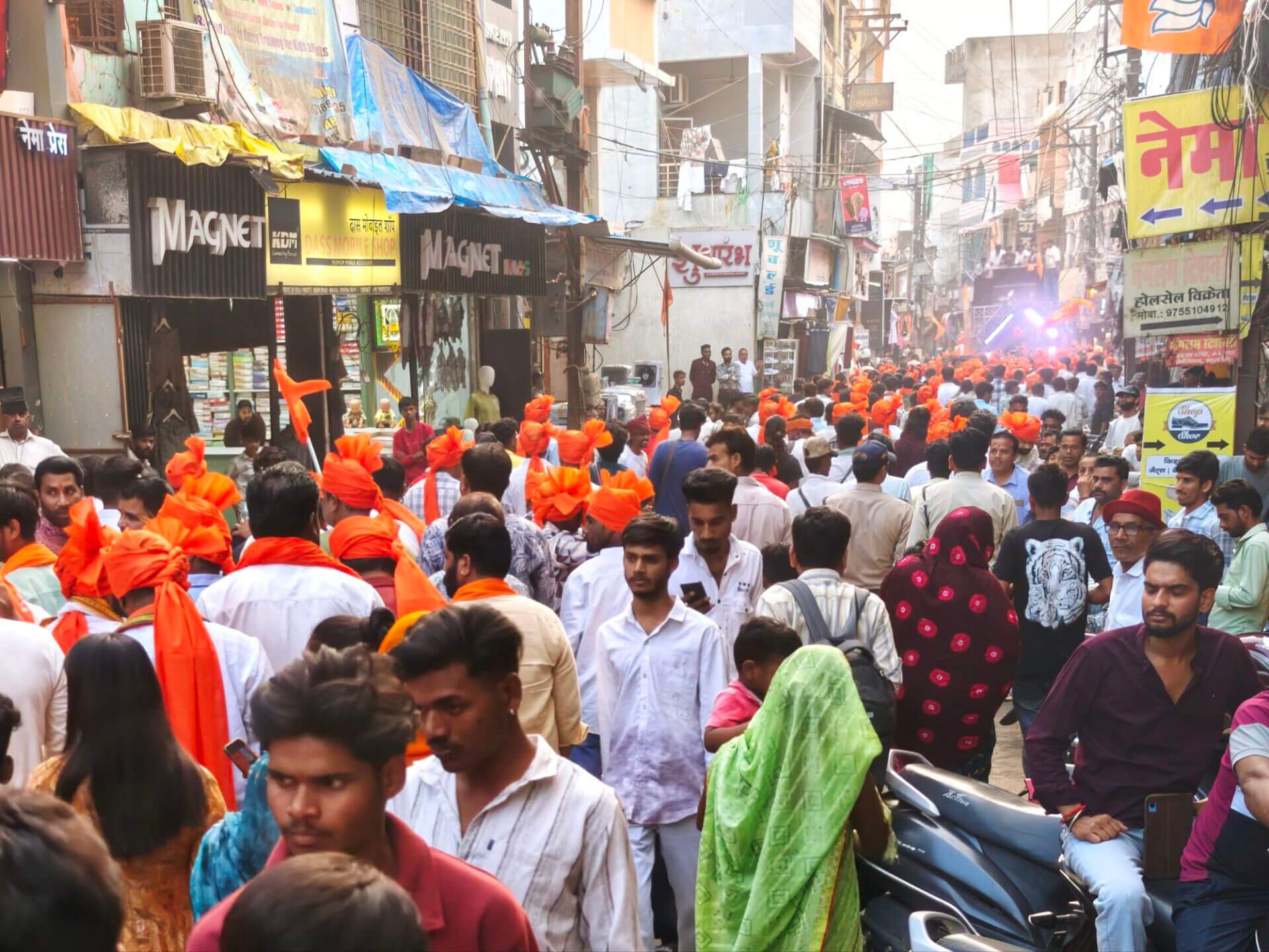 Zurück nach Vidisha gehe ich zu Fuß. Erst zwischen Getreidefeldern und dann durch die Straßen der Stadt. Viele Gottheiten, viele Göttergeburtstage: Auch das Gedränge vor dem Tempel am Vormittag wird erklärlich: Es ist der Vollmondtag des Hindumonats Chaitra. Hanuman Jayanti: Der „Affengott“ Hanuman wird gefeiert. Er steht für Loyalität, Entschlossenheit und Stärke. Stärke wird auch beim Umzug demonstriert. Und Lautstärke.