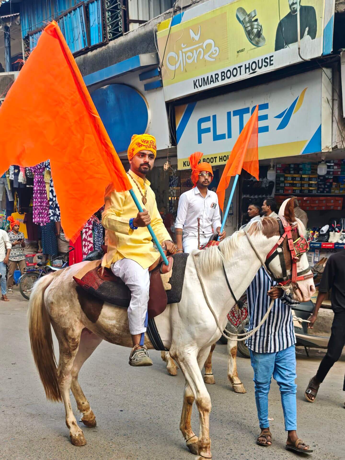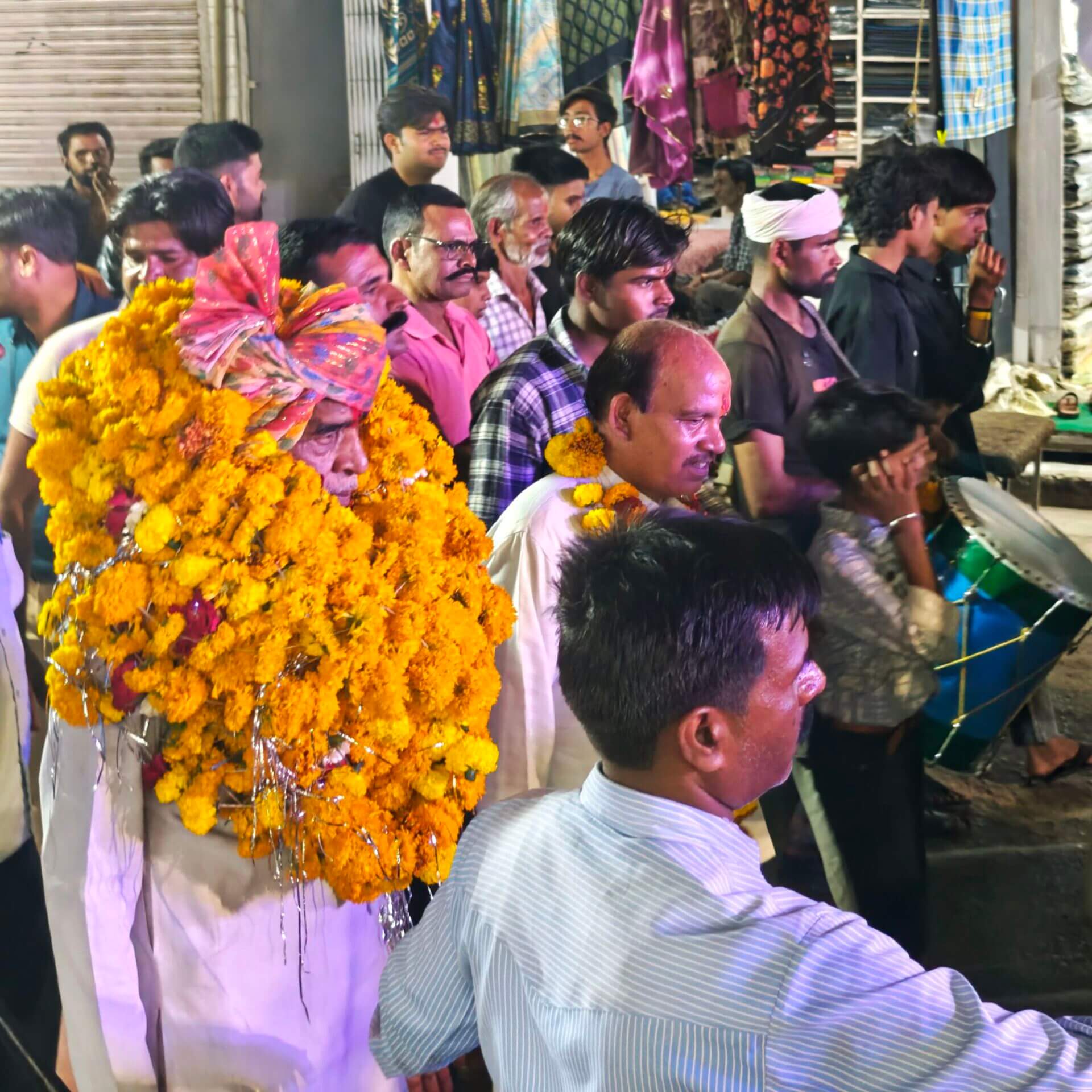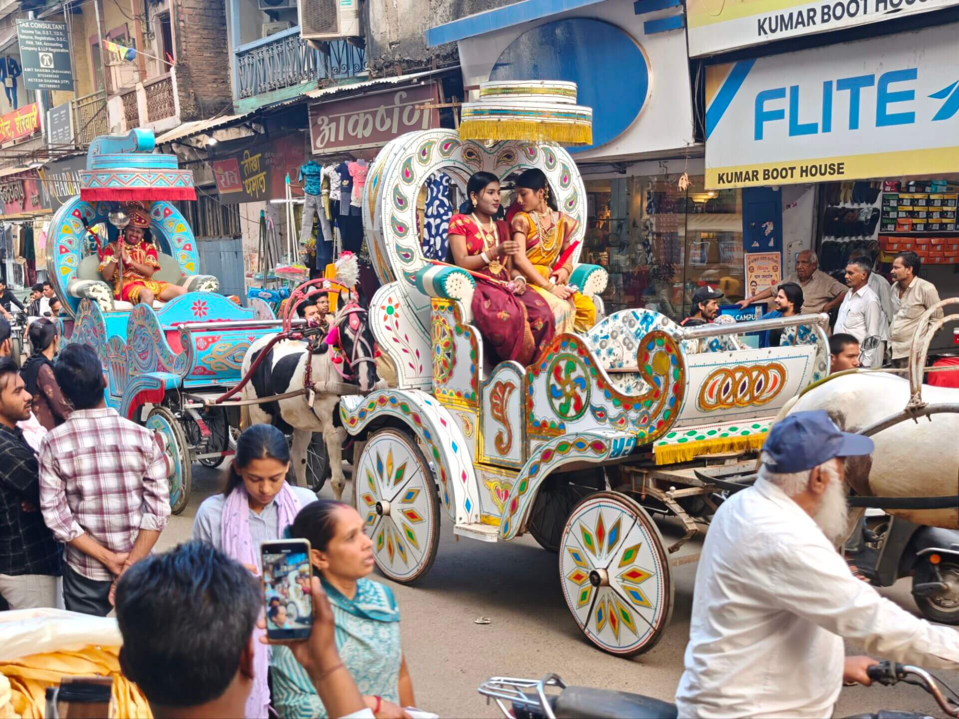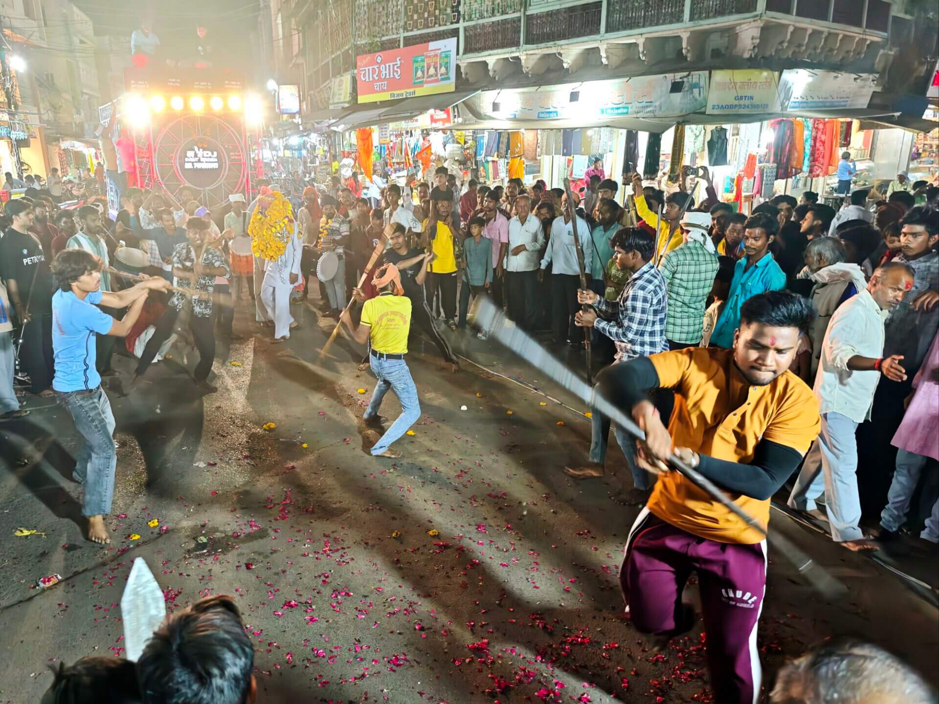 Zurück nach Vidisha gehe ich zu Fuß. Erst zwischen Getreidefeldern und dann durch die Straßen der Stadt. Viele Gottheiten, viele Göttergeburtstage: Auch das Gedränge vor dem Tempel am Vormittag wird erklärlich: Es ist der Vollmondtag des Hindumonats Chaitra. Hanuman Jayanti: Der „Affengott“ Hanuman wird gefeiert. Er steht für Loyalität, Entschlossenheit und Stärke. Stärke wird auch beim Umzug demonstriert. Und Lautstärke.