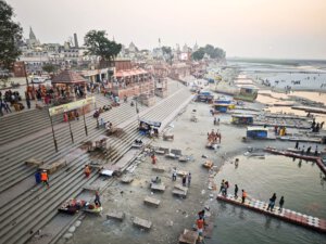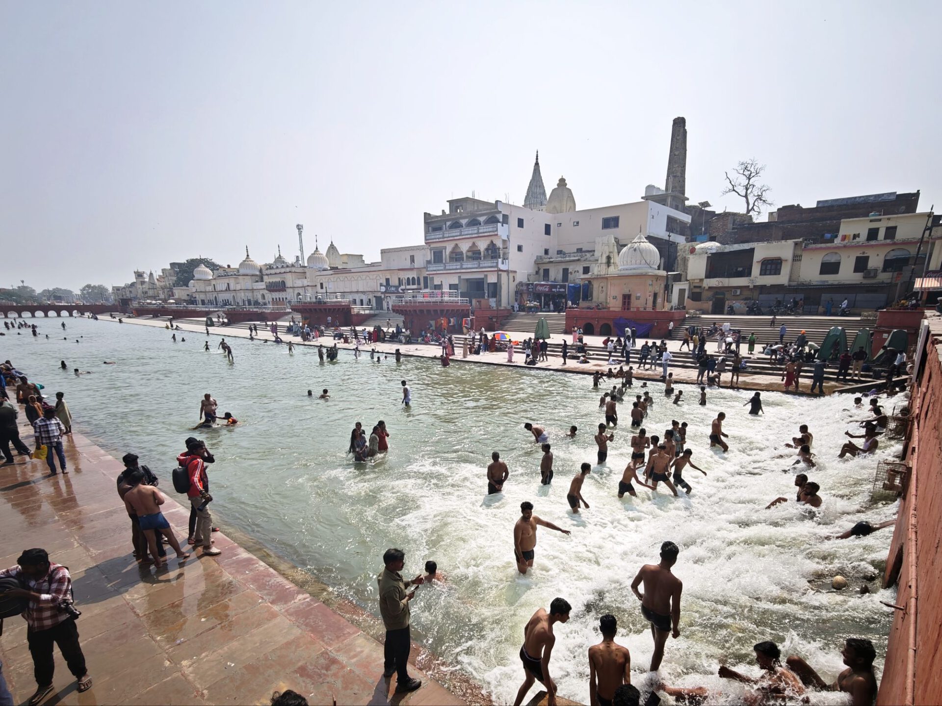 Anders als ich es bisher in Indien erlebt habe, ist in Ayodhya aber auch der Konflikt zwischen der hinduistischen Mehrheit und der islamischen Minderheit geradezu in Beton gegossen: Am exakten Geburtsort von Gott Rama soll ein Hindu-Tempel gestanden haben, den der Mogul-Herrscher um 1530 abreisen und durch eine Moschee ersetzen ließ. 1992 wurde die Moschee von einem (wohl gelenkten) Mob gestürmt und zerstört. Mit Auslöser für die landesweiten Unruhen 1992 mit etwa 2000 Todesopfern. 2001 sprach ein Gericht das Gelände der hinduistischen Gemeinschaft zu. Der neue gigantische Rama Tempel, ein national hinduistisches Symbol, wurde im Jahr 2024 eröffnet. www.tagesschau.de