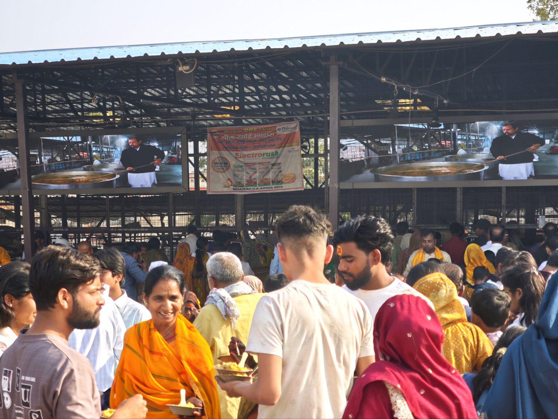 Trotzdem will ich auch diesen neuen Tempel besuchen. Zwei Sicherheitskontrollen, eine großflächige Schleusung und für mich zwei Passkontrollen sind erforderlich. Daher gibt es kaum Gedränge. Elektronische Geräte (Handys) in die Anlage zu bringen wird wieder strikt unterbunden. Architektur und Ausschmückung, alles monochrom in Sandstein, sind trotz der Giganterie gelungen. Beim Verlassen des Geländes bekomme ich, wie jeder Besucher, aus einer Großküche heraus ein warmes Essen und ein Getränk gereicht.
