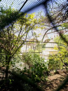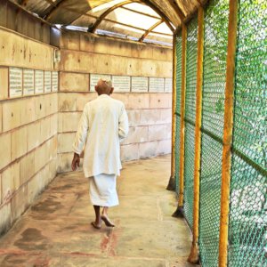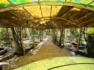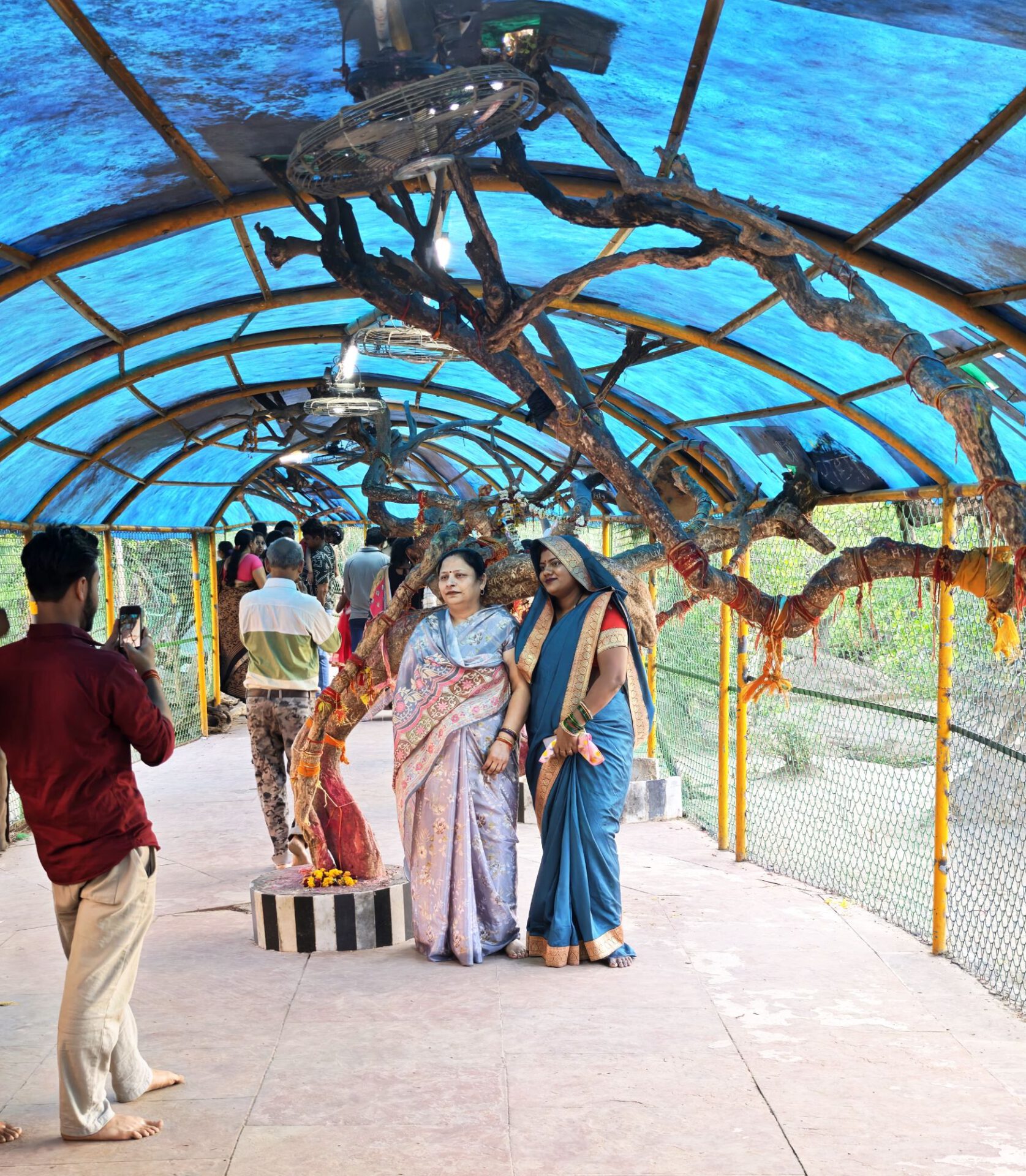 Schon fast skurril erscheinen die Shri Nidhivan und Seva Kunj Tempel: Keine Tempel im eigentlichen Sinn sondern kleine Wäldchen in der Innenstadt. Nidhivan verkörpert den heiligen Hain in dem Krishna sich mit den Hirtenmädchen vergnügt haben soll. Seva Kunj den Wald, in dem er seine Nächte tanzend mit Rada verbracht hat. Bzw. verbringt: Nachts wird alles abgeriegelt, Zutritt streng unterbunden. Dann kehren Krishna, Rada und die Gopis zurück. Durch die kleinen Wäldchen führen, zu einzelnen Schreinen, verwinkelte Wege in, offenbar auch wegen der Affen, dicht vergitterten Röhren. Herein wachsende Stämme oder Zweige werden verehrt.