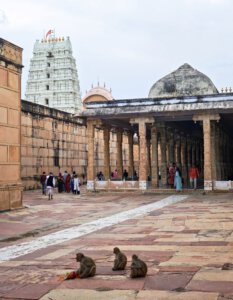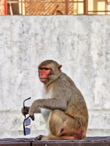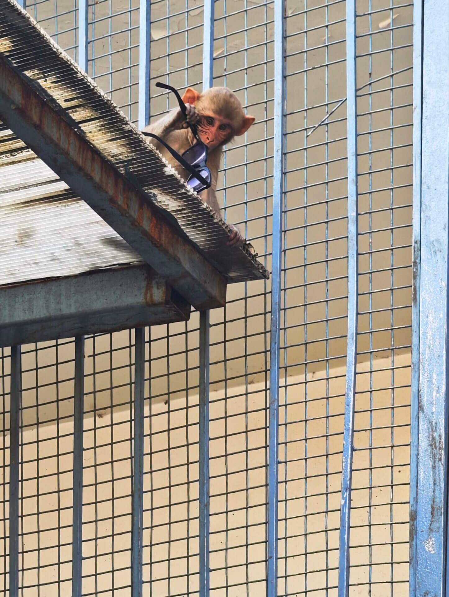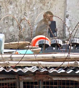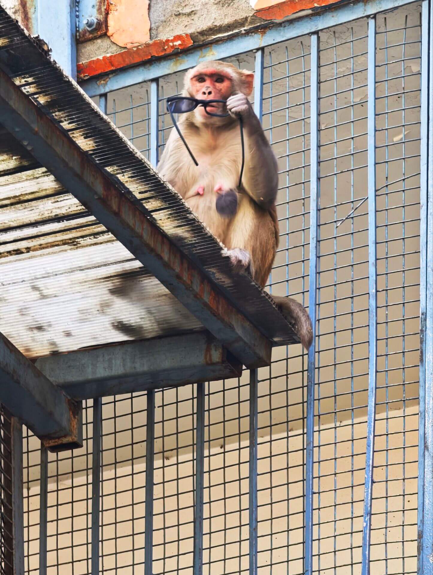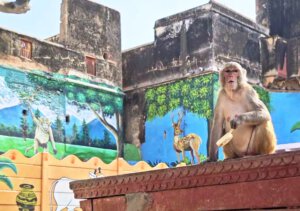 Wenn Dir ein Affe im Sprung von hinten Deine coole Reise-Basecap vom Kopf reißt hast Du keine Chance. Nach und nach erkenne ich die Gesetze von Vrindavan: Benutze keine Handtasche oder Tüte, ein Affe würde sie Dir definitiv mit Gewalt rauben. Trage keine Basecap, ein Affe würde sie Dir vom Kopf reißen. Tage keine (Sonnen-) Brille, ein Affe würde sie Dir vom Gesicht ziehen. Wenn Du Dein Handy in die Hand nimmst, sei konzentriert und halte es verdeckt mit zwei Händen, ein Affe… Und der Gruß lautet nicht Namasde sondern Hare Krishna!