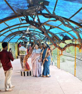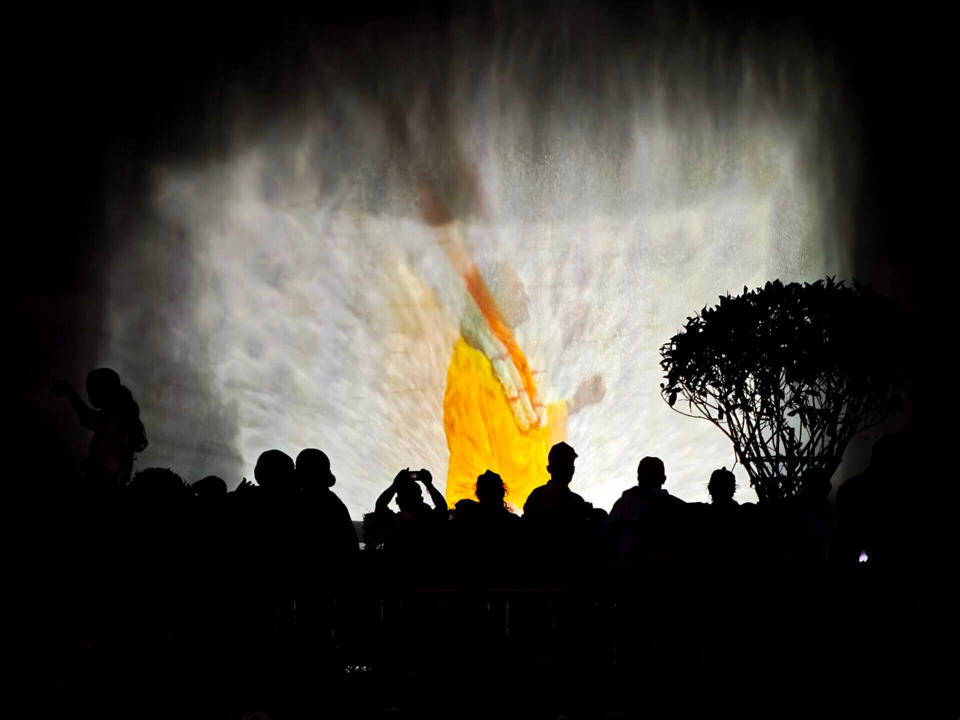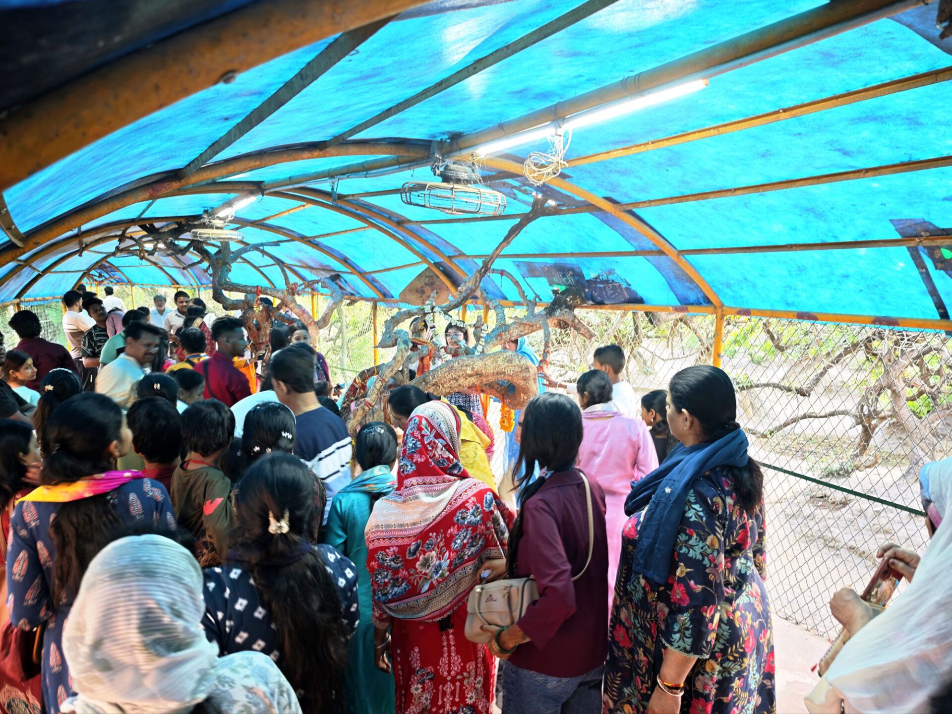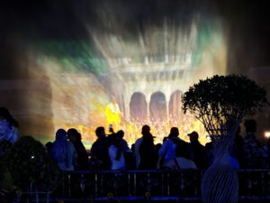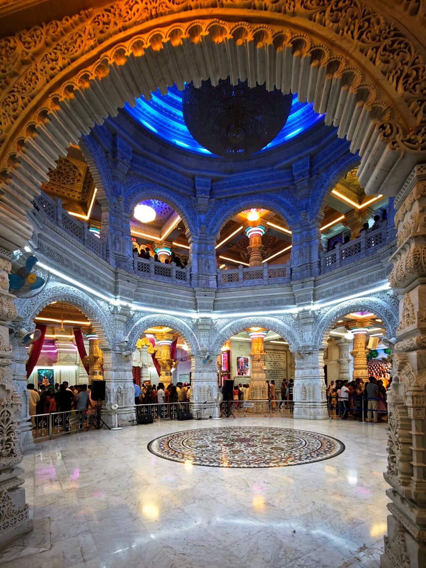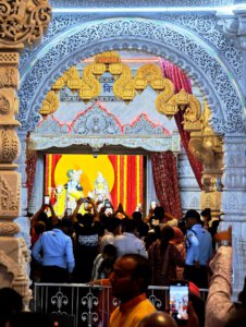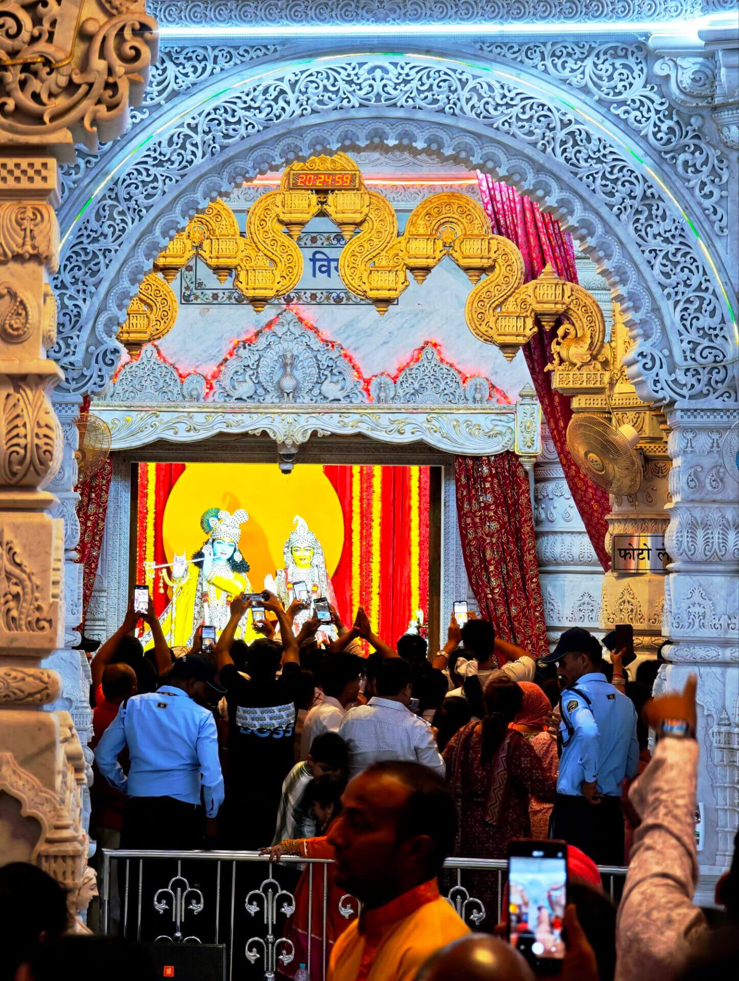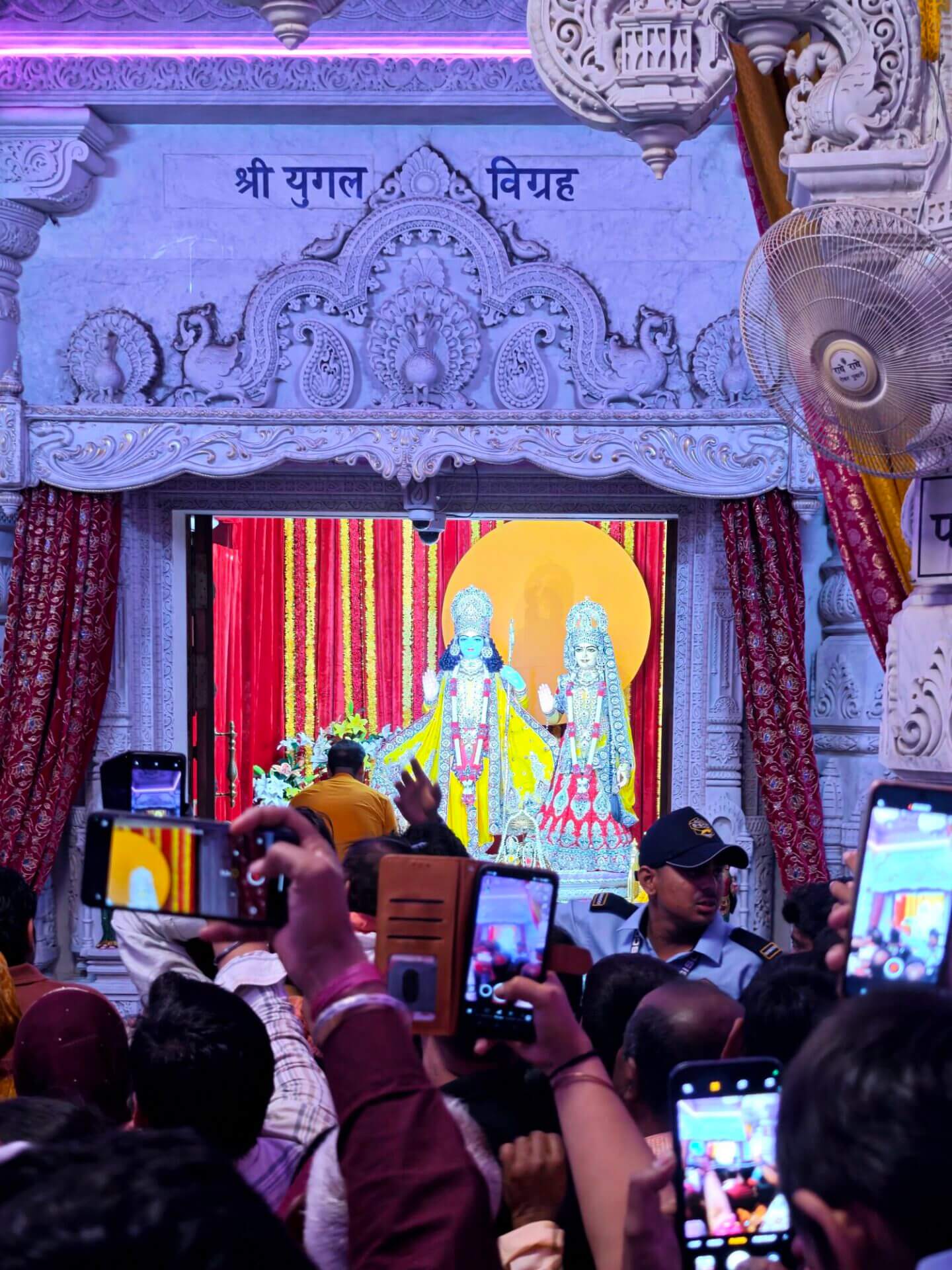 Der gigantische weiße (bzw. knallig farbenfroh beleuchtete) Prem Mandir wurde von 2001 bis 2012 als „Tempel der göttlichen Liebe“ von einer Organisation (JKP) gebaut, die sich sozial karitativ engagiert und insbesondere das Bhakti-Bewußtsein fördern will. Am Abend strömen die Massen zu den Licht- und Wasserspielen und den Darstellungen der Gottheiten auf zwei Ebenen im Tempel. Die Vorhänge mögen geöffnet werden!