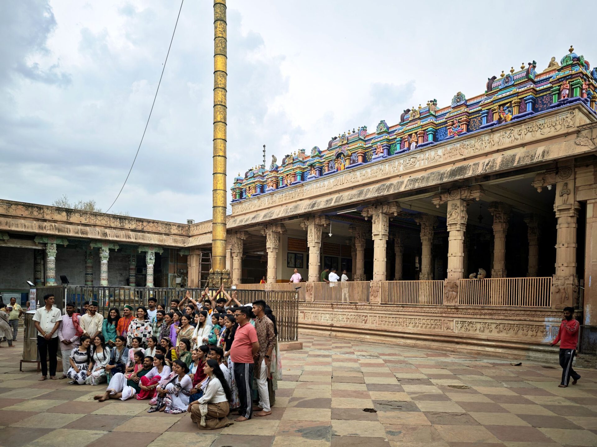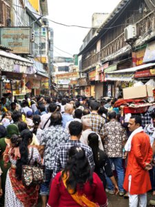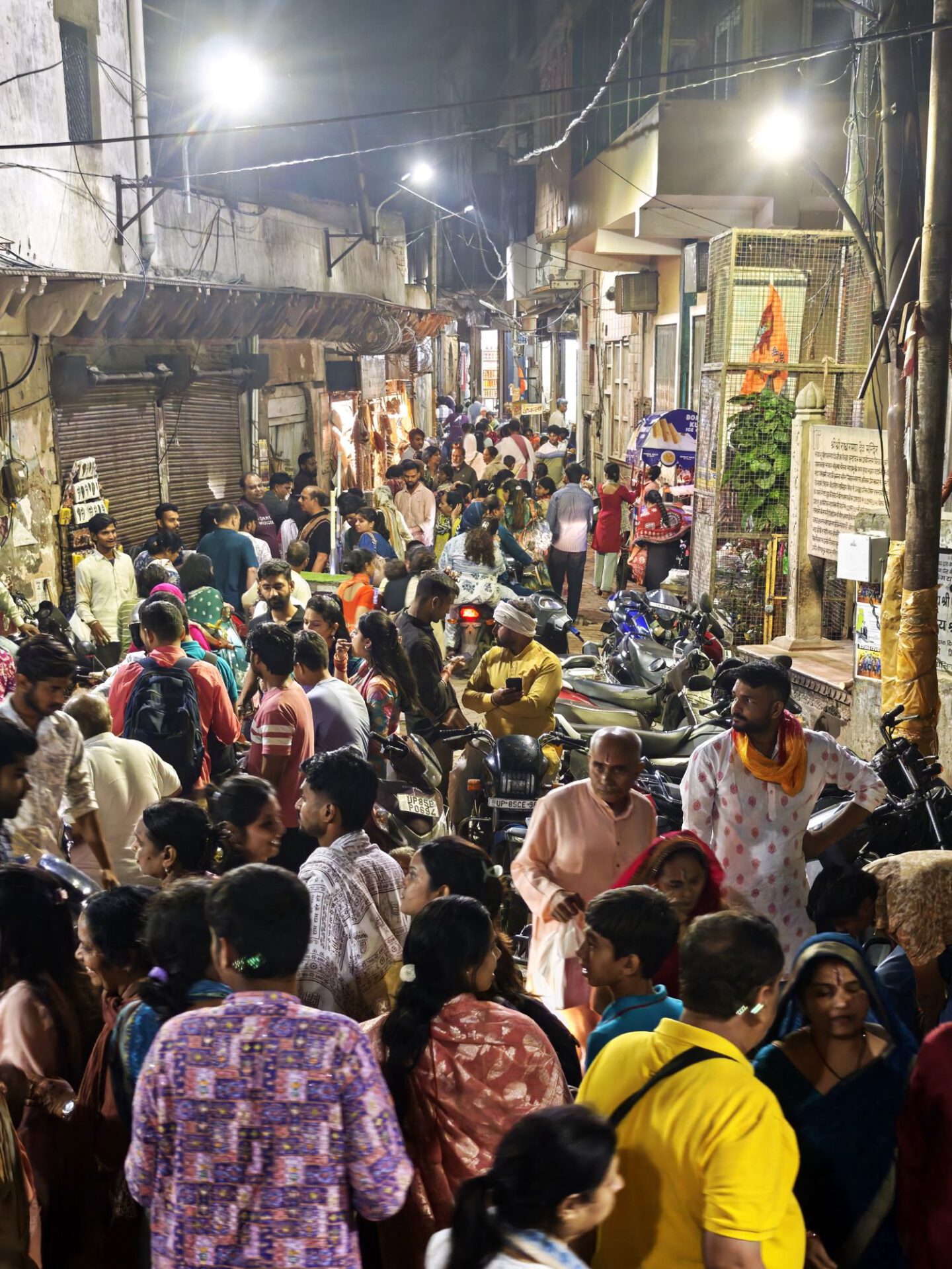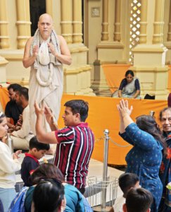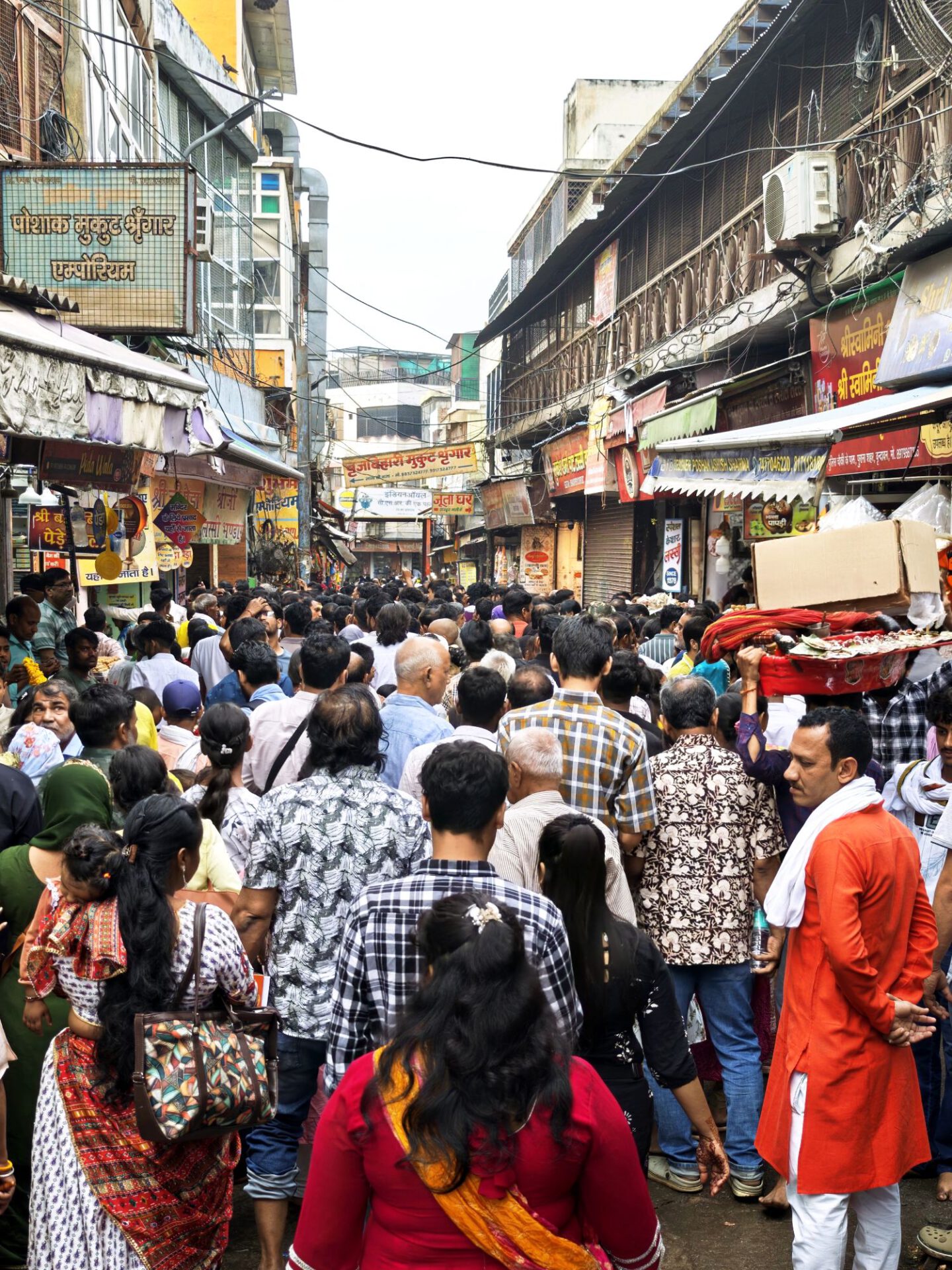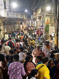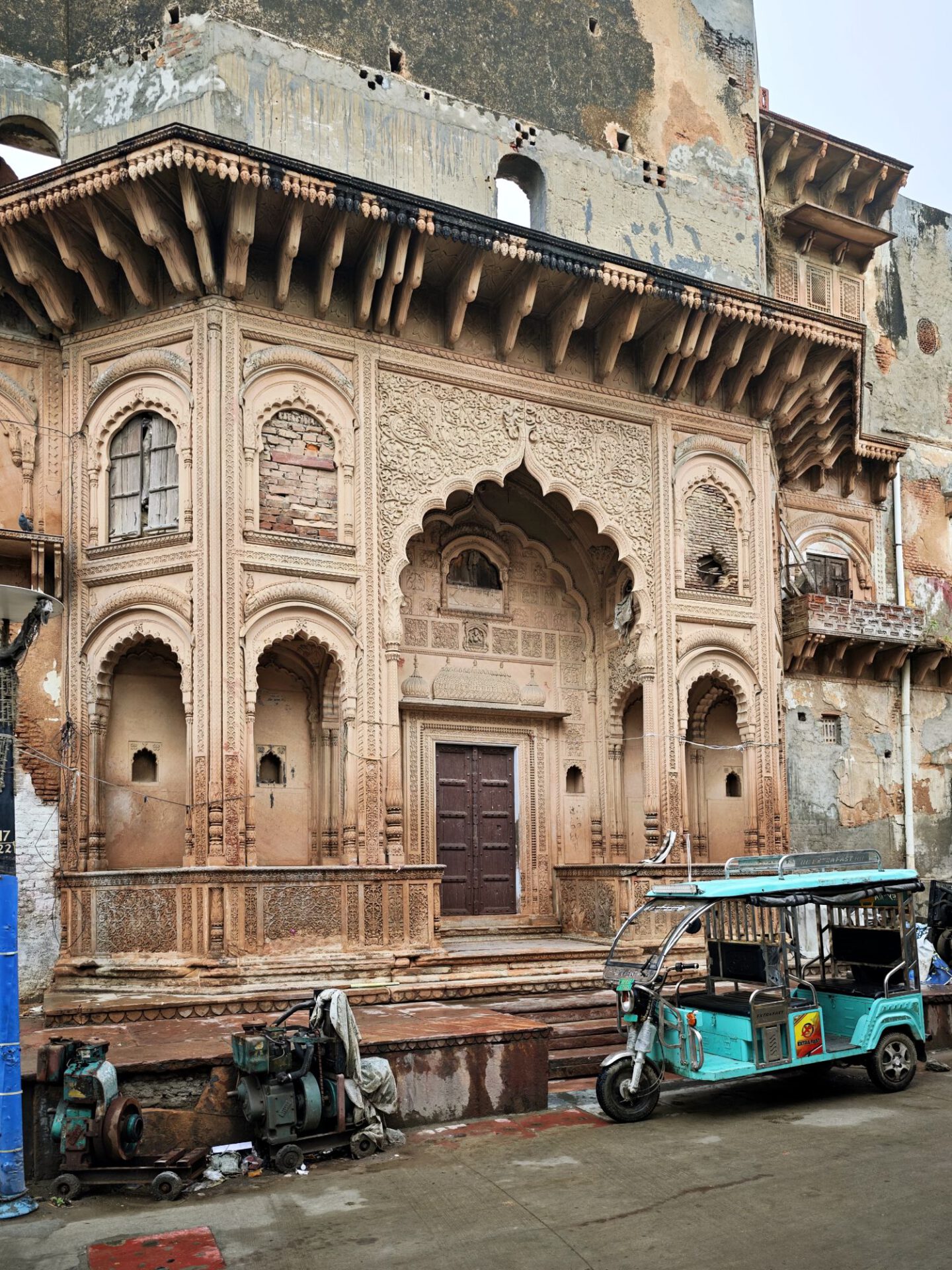 Ich habe ein schönes Zimmer im Sri Krishna Bhakti Ashram. WiFi-Passwort: harekrishna. Beim Empfang wird mir ungefragt eine Liste mit den wichtigsten Krishna-Tempeln ausgehändigt. Zwei Tage ziehe ich durch die Gassen der Innenstadt. Ich suche die Tempel die für mich spannend sind. In andere lasse ich mich einfach spontan durch das Chanten der Mantras, Arati oder die Stille hineinziehen. Vor manchen Tempeln warten so viele Menschen, dass der Rückstau mehrere Gassen blockiert. Eine ganze Stadt im Taumel der Krishna-Verehrung. Bzw. Bhakti: Der liebenden Hingabe an die Gottheit.