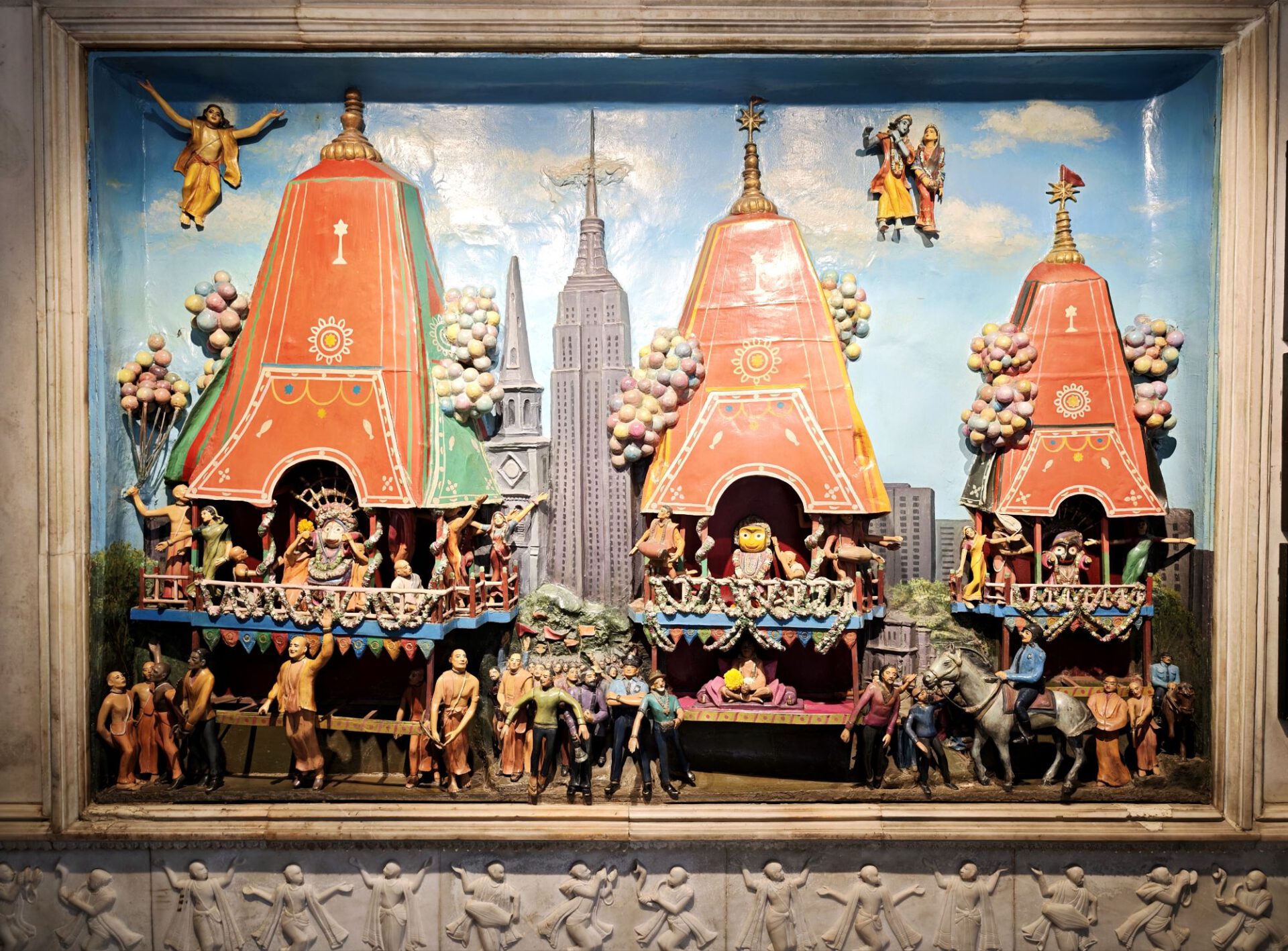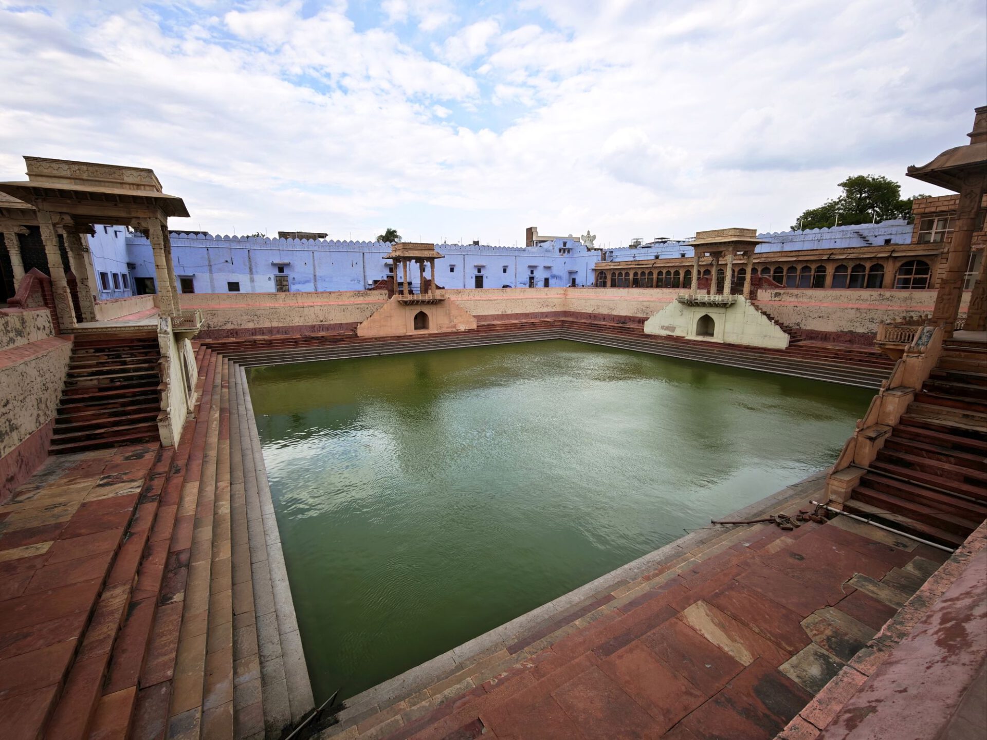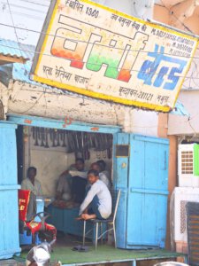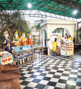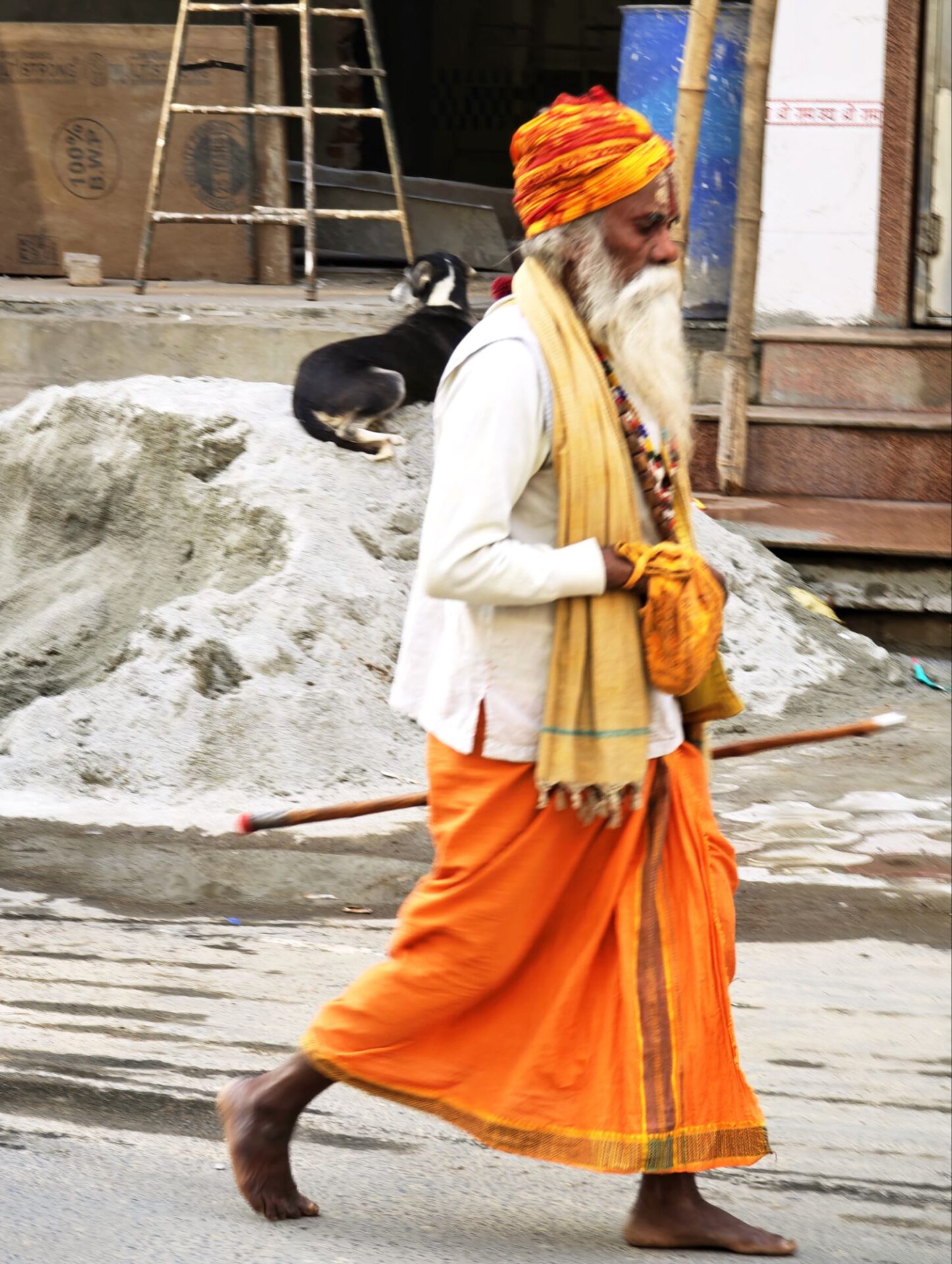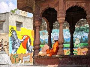 Der ISKCON Tempel ist einer der Hauptsitze der 1966 in New York gegründeten International Society for Krishna Consciousness. Bei uns eher als Hare-Krishna-Bewegung bekannt. Anderes als beim Prem Mandir gibt es hier weniger Show, sondern gelebte Verehrung und Hingabe. Im Haupttempel wird das Hare-Krishna-Mantra seit den 1990er Jahren ununterbrochen rund um die Uhr gechantet. Mir genügt eine knappe Stunde. Dabei komme ich mit einem älteren Amerikaner ins Gespräch, der als Taktgeber fungiert. Seit 30 Jahren, sagt er, lebt er in Vrindavan und praktisch im Tempel. Das Mantra wurde sein Leben. Er lacht fröhlich dabei. Ich ziehe trotzdem weiter.