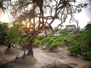 Wider Erwarten kann ich mir die Basecap mit einer langen Bambusstange zurückholen. Die Bissspuren sind vertretbar. Die Reste der optischen Sonnenbrille holen mir zwei waghalsige Jugendliche zurück, die, es sei ihnen vergönnt, ein einträgliches Geschäftsmodell daraus gemacht haben. Brauchbar ist die Brille aber nicht mehr.