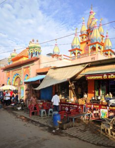 5000 Häuser, 5000 Tempel: Das Städtchen Vrindavan: Wohl der wichtigste Krishna-Ort Indiens. Lord Krishna, achter Avatar von Gott Vishnu und u.a. Verkörperung der Liebe. Nach der Mythologie (bzw. der Bhagavatapurana) verbrachte er seine Kindheit und Jugend in Vrindavan. Hier spielte er als göttlicher Hirtenjunge, neckte und versteckte die Kleider der badenden Hirtenmädchen (Gopis) und verzauberte sie und insbesondere seine ewige Geliebte Rada, nachts in den Wäldern mit seinen Tänzen und Flötenspielen.