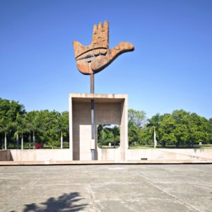 Als ich im Februar 2024 den Film „Kraft der Utopie – Leben mit Le Corbusier in Chandigarh“ im Kino gesehen habe, wusste ich noch nicht, ob ich die Stadt je erreichen kann. Nun hat eine achtstündige Bahnfahrt, durch Delhi und in den Norden, genügt. Nach der Teilung Indiens und des Punjab im Jahr 1947 sollte für den indischen Bundesstaat Punjab am Fuß des Himalaya eine neue Hauptstadt entstehen. Auf besonderen Wunsch des Ministerpräsidenten wurden Planung und Architektur dem modernen schweizerisch-französischen Architekten Le Corbusier übertragen, der damit sein Lebenswerk vollendete. Chandigarh, kein Pilgerziel für Gläubige sondern für Architekten. Auch wenn der Beton inzwischen bröckelt.