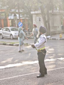 „Chandigarh – The City Beautiful“: Tatsächlich ist die erste Planstadt Indiens anders, als jeder Ort den ich bisher in Indien gesehen habe. Sie ist in Sektoren geplant, die zum Wohnen mit den Grunderfordernissen dienen oder spezielle Zwecke haben. In den Sektoren leben die Menschen in Wohnungen und nicht in Ruinen oder auf der Straße. Es gibt genug Platz für alle. Zwischen den Sektoren verlaufen vier- oder sechsspurige Straßen mit Rad- und Gehwegen (alles mit Grünstreifen voneinander getrennt), die sich in großflächigen Kreisverkehren treffen. Es gibt offene Plätze und große Grünflächen. Kinder betteln nicht sondern planschen in Springbrunnen.