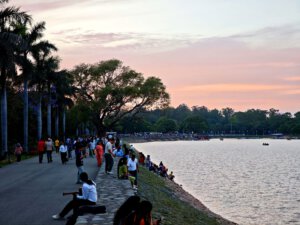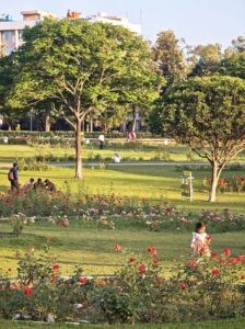 Die Sikhs sind im sonst eher säkularen Stadtbild präsent. Zum Gedenktag für ihren 10. Guru Gobind Singh wird eine Prozession veranstaltet. Einer der mitgeht erklärt mir, dass der Umzug wichtig für sie ist, weil sie keinen großen Tempel in der Stadt haben. Im Gegensatz zum strengen modernen Chandigarh von Le Corbusier steht der verspielte Rock Garden von Nek Chand aus den 1960er Jahren. Ursprünglich heimlich aus Bauschutt und Restmaterialien des Städtebaus gebaut, ist er heute Ausflugsziel vor allem für Familien. The Rose Garden soll der größte seiner Art in Asien sein und ist offen für alle. Ein schönes Naherholungsgebiet ist der Suknah Lake am Rand der Stadt, vor den ersten Ausläufern des Himalaya.