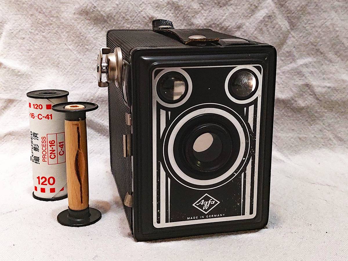 1945 bis 1951. Bereits zu ihrer Zeit eine denkbar schlichte Kamera. Zwei Filme (Mittelformat-Rollfilm 120) überstiegen wohl bereits den Preis der Kamera selbst. Aber trotzdem, oder gerade deshalb, in sehr großer Stückzahl in der Nachkriegszeit vom Schulkind bis zum ambitionierten Amateurfotografen an den Mann gebracht. Unterwegs eine „halbe Schuhschachtel“, vage Richtung Motiv halten, Klack – und sich vom (manchmal erstaunlich guten) Ergebnis überraschen lassen…